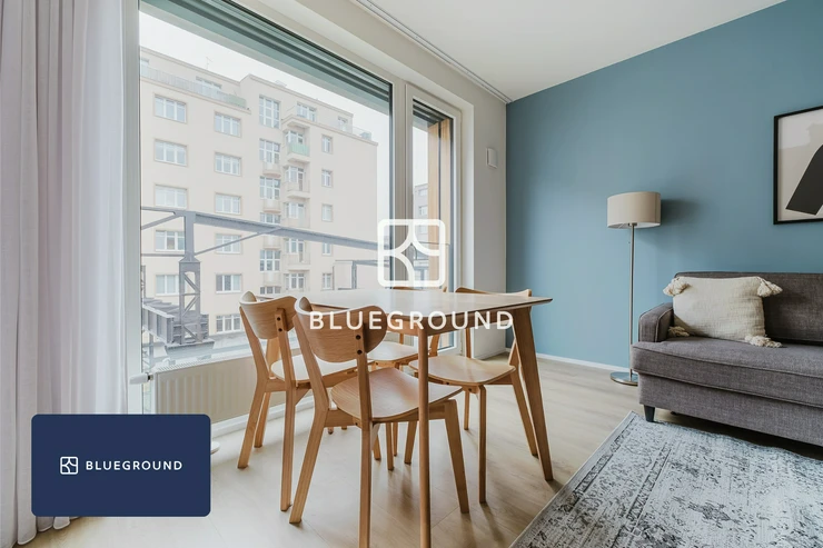 Blueground offers a fully furnished 1-bedroom apartment in Prague 7, available for move-in from January 21. This modern, bright apartment, located in a new residential complex, features one bedroom and a total area of 58.29 m². Perfect for couples or individuals who value comfort and convenience. The apartment includes a dedicated workspace and high-speed internet to ensure a comfortable remote working experience.