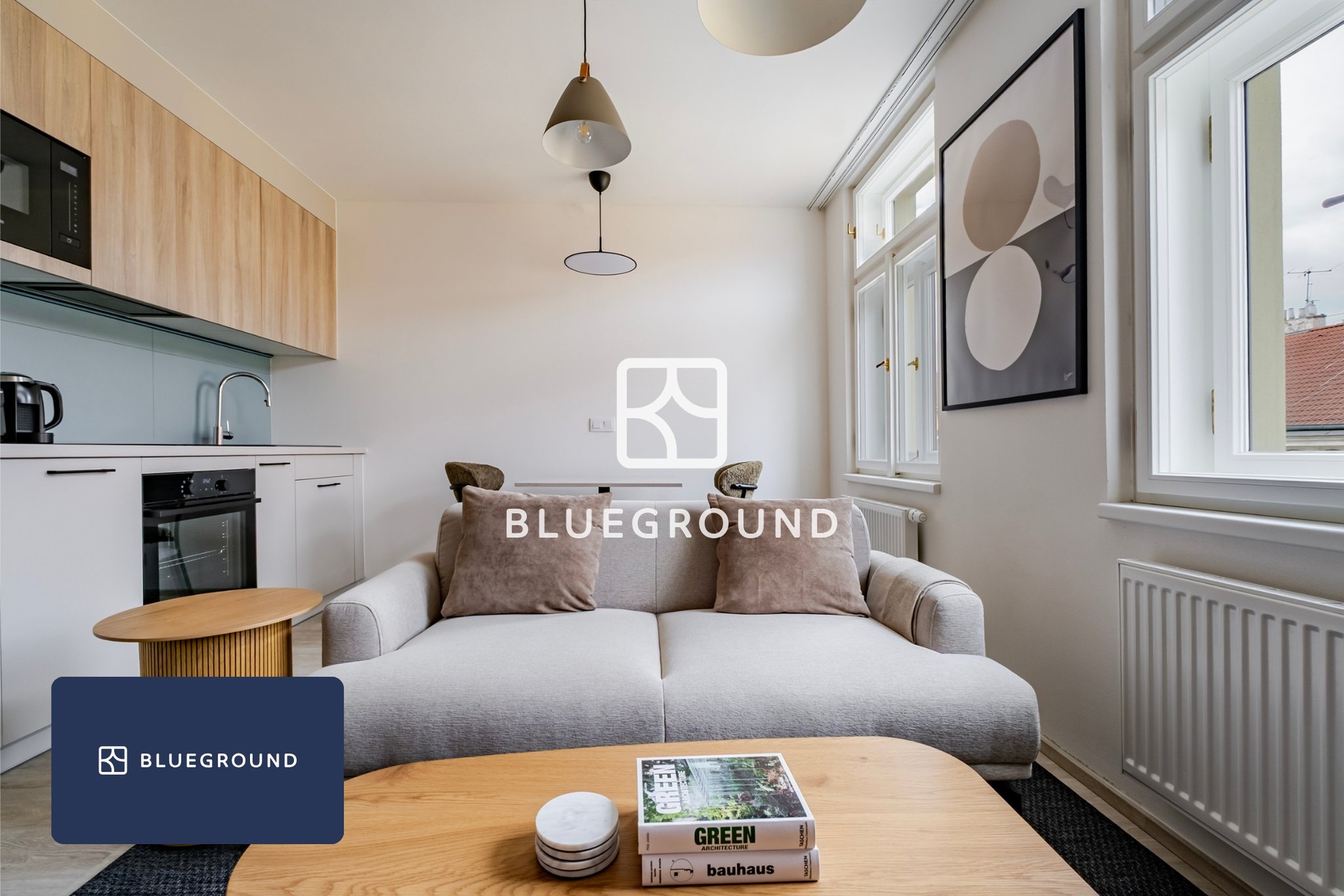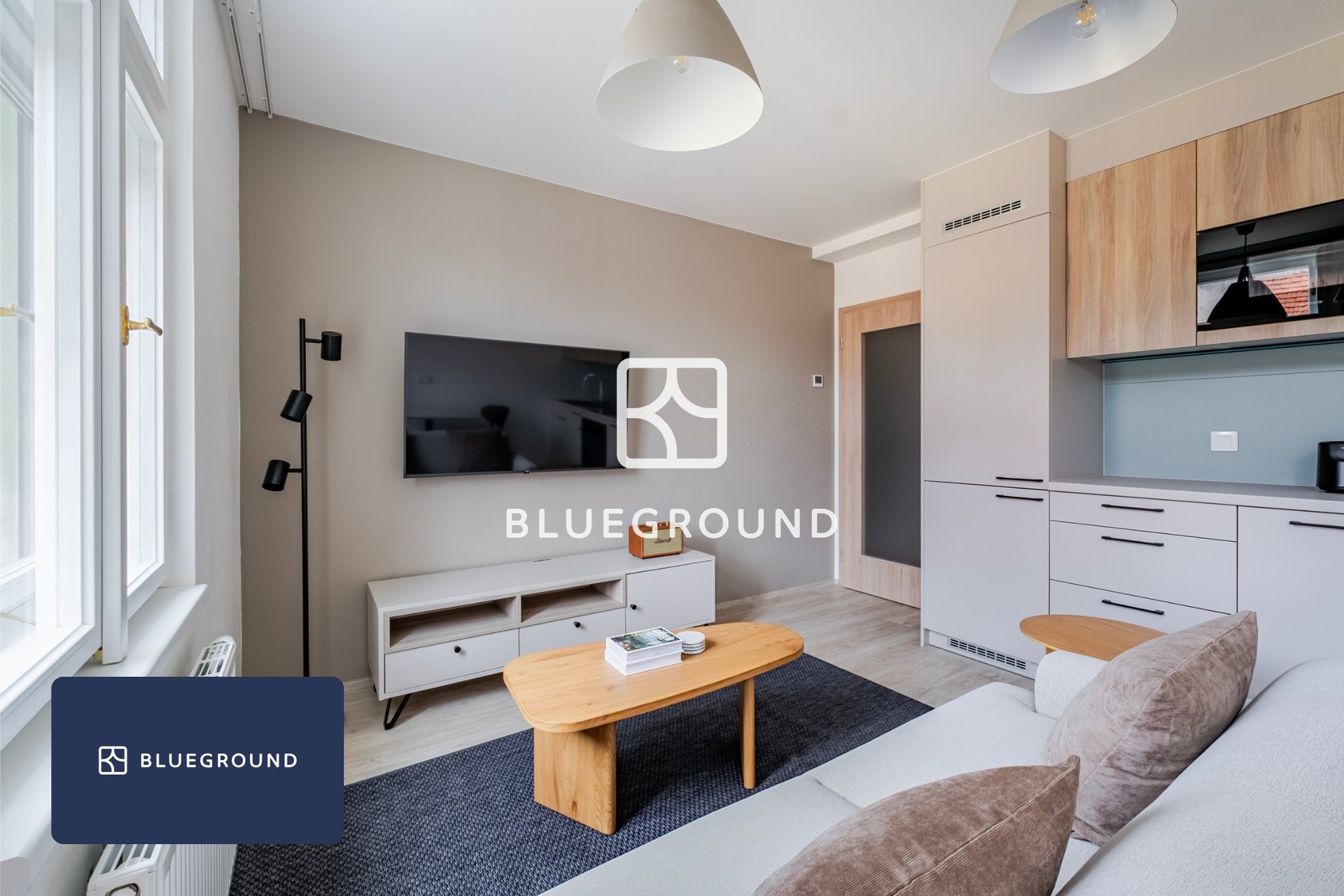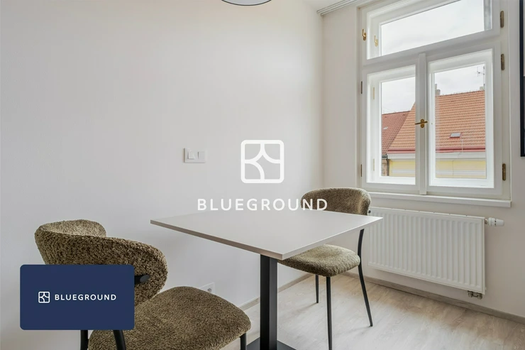 Blueground offers a fully furnished and equipped 2kk apartment in the quiet Nusle district of Prague 4, available for stays of one month or longer. The apartment is located in a peaceful residential area with quick access to the city center. With nearby parks, cafés, and local spots to explore, this apartment is an excellent choice for professionals or couples seeking a quiet, comfortable, and well-connected place to call home.