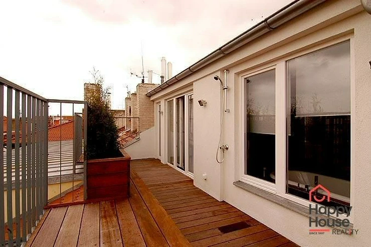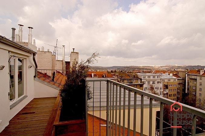 Pronajmeme luxusní, prostorný, zařízený, podkrovní mezonetový byt 3+kk (90 m2) s terasou (18 m2) v 6. patře cihlového domu s výtahem v klidné lokalitě Prahy 6 v Bubeneči. Kuchyňská linka je plně vybavena nádobím a spotřebiči lednicí, mrazničkou, sklokeramickou deskou, el a mikrovlnnou troubo, myčkou a digestoří. V bytě se nachází dvě koupelny s vanou a sprchovým koutem. Dvě toalety s bidetem jsou umístěny samotatně. V technické místnosti je pračka se sušičkou. Plynový kotel v bytě. Parkety, dlažba. K dispozici zabezpečovaní zařízení, klimatizace, trezor, TV, DVD, Sat. V ceně nájmu je jednou za týden úklid a výměna ručníků a ložního prádla. Parkování na ulici zóny.