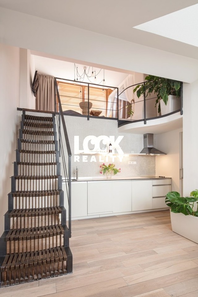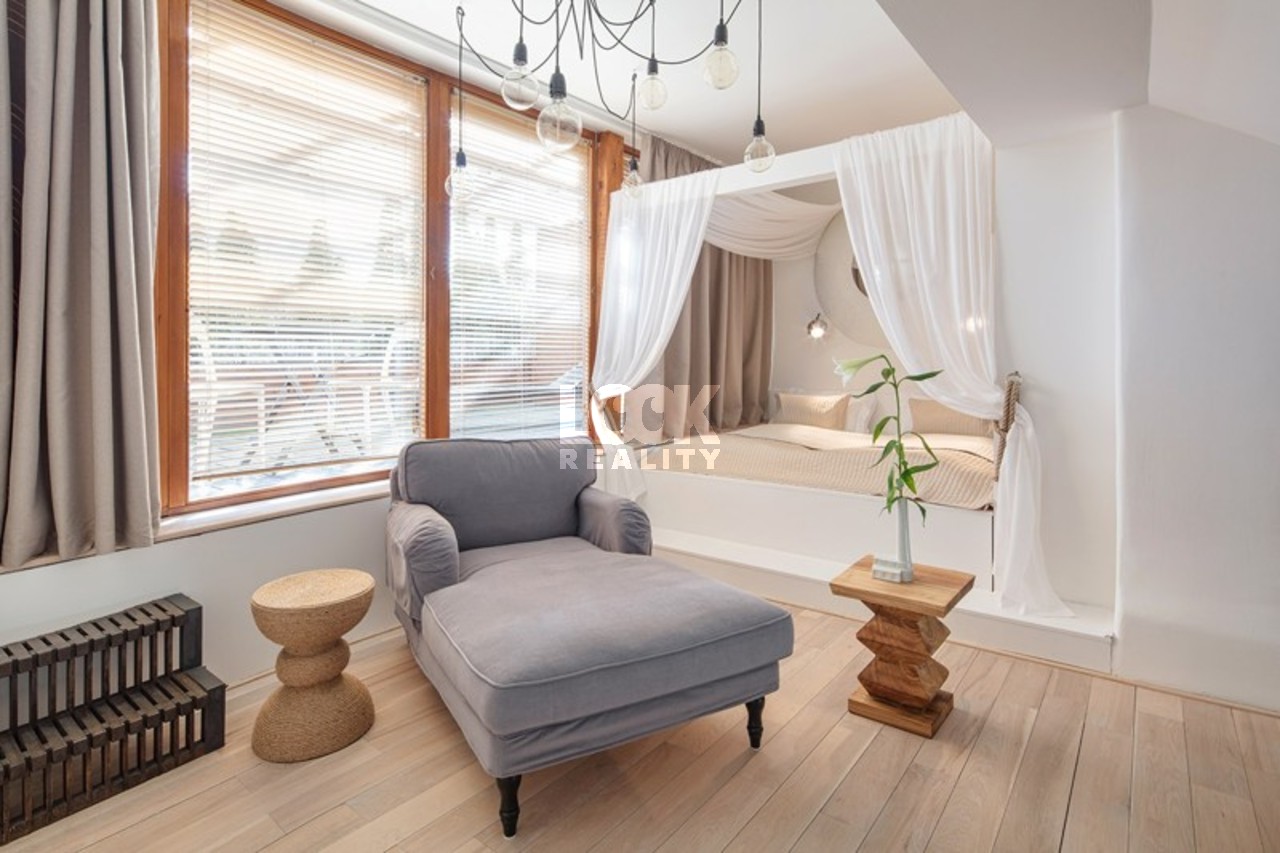 Luxurious duplex with a terrace and a luxuriously furnished bedroom upstairs. We offer for rent a beautiful 1+1 duplex apartment with an area of 38 m2, located on the 2nd floor of a building without an elevator on Holeckova Street. The apartment is rented fully furnished with luxury furniture. The upper floor there is a bedroom with a king-size four-poster bed and a living area with a sofa. Downstairs there is a kitchen and dining area with a fitted kitchen, dining area with table and chairs. There is also a TV/SAT, air conditioning, bathroom and toilet, and a wardrobe in the hallway. Internet access is available, and cleaning is provided once a week. There is also a reception desk. The apartment is located in a popular area in the center of Prague. Nearby are the Petrin Lookout Tower, Kinsky Garden, and nice places for walking and relaxing. Complete civic amenities. There are many cafes and restaurants, shops, a post office, and medical facilities in the area. Another advantage is the proximity of the Nový Smíchov shopping center, which offers many shops, services, and a multiplex cinema. Excellent transport accessibility. The U Zvonu tram stop (trams 10, 16, 9) is in close proximity, and the Andel metro station (B) is about a 5-minute ride away. Beautiful living. We recommend it. Short-term rental possible. The price for short-term rental may vary. Available from January 5, 2026.