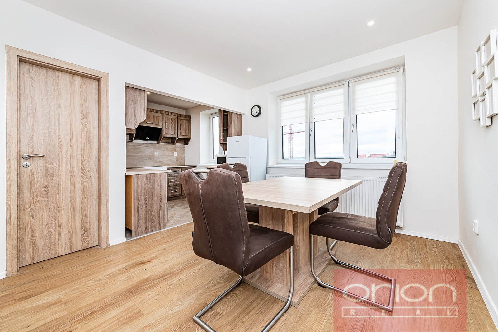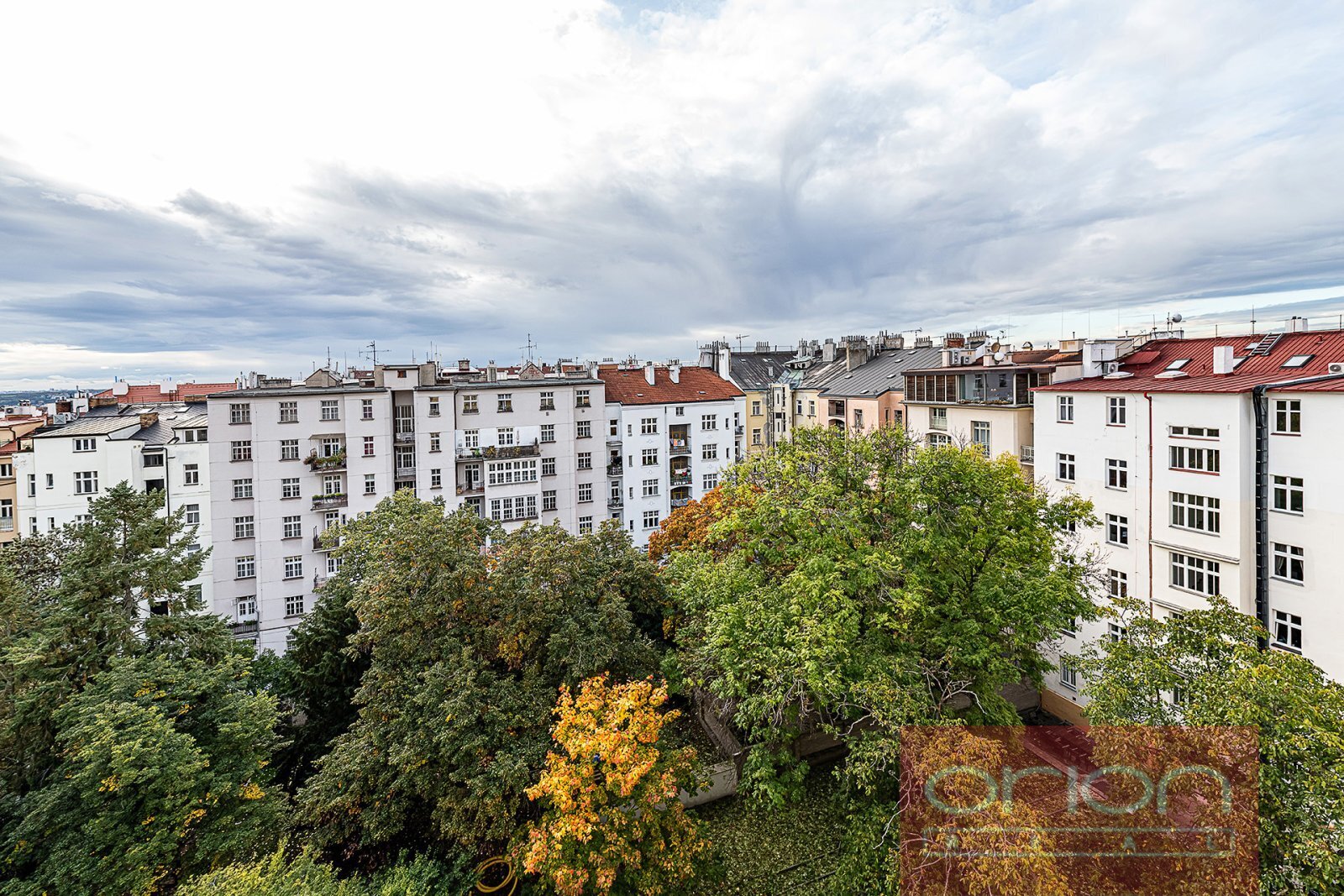 We offer for rent a bright two bedroom apartment (82 sqm) on the 6th floor of an apartment building with an elevator in a sought-after location in Prague 2 - Vinohrady, just a few minutes walk to Náměstí Jiřího z Poděbrad Square. The apartment offers a hallway with built-in wardrobes, a kitchen with a dining room and a pantry, 2 bedrooms, 2 bathrooms - one with a shower and toilet, the other with a bathtub. The apartment includes a storage room of 3 sqm. The kitchen is equipped with all appliances - a refrigerator with a freezer, a dishwasher, an electric stove with an oven, a microwave oven. The floors are vinyl with a wood pattern, the apartment includes a washing machine in the bathroom, heating is provided by its own gas boiler. All rooms are oriented to the southwest with a beautiful view of the courtyard, where a well-kept garden is available for use by the residents of the house. The apartment offers comfortable living in the Vinohrady area with all civic amenities, restaurants, cafes, bistros, local shops and excellent transport connections - metro and tram stops at Náměstí Jiřího z Poděbrad Square. Within walking distance is the popular Riegrovy sady park, Wenceslas Square, and the Flóra shopping center.