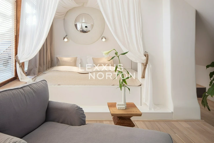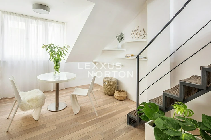 This duplex apartment on the 5th floor of a building in the attractive Smichov district of Prague offers exclusive living close to several parks and with excellent transport links. The interior features an entrance hall, living room with kitchenette and dining area, separate toilet, cloakroom, bedroom upstairs with access to the terrace, and bathroom (shower). This exclusive location offers a homely and safe environment throughout the residence, reception services from 9:00 a.m. to 4:00 p.m., weekly cleaning of apartments with a change of bed linen and towels, 24/7 emergency service, use of the renovated lobby, which provides a pleasant seating area, and of course high-speed internet, which allows you to work from home.The apartment is offered furnished and equipped with kitchen appliances, WiFi, washing machine and dryer, air conditioning, dining set, bed, sofa, and wardrobe. Spacious living in the unique location of Holeckova Street, located on the slopes of Strahov, is one of the most desirable residential areas. It consists mainly of villas set in green surroundings. It has excellent transport accessibility by public transport buses or trams. The nearest metro station Anděl can be reached in 11 minutes on average. The area also has good road connections. The motorway ring road can be reached in 13 minutes by car and the Vaclav Havel Airport in 18 minutes. Families with children will appreciate the many kindergartens, primary and secondary schools and prestigious international schools in the area - Lycée Francais de Prague, Deutsche Schule Prag and solid hospital amenities. All the rich offer of leisure activities in the nearby Švandov Theatre, OC Novy Smichov, Cinema City Novy Smichov or CineStar Andel. The apartment is located near Arbes Square or 14th October Square. Romantic walks and pleasant sittings can be enjoyed in the nearby Dienzenhofer Gardens, Sacré Coeur Park, Petrin Gardens or Kinsky Garden. The inquiring client agrees to pay a commission of 1 month's rent plus VAT.If you are unable to view the property in person, we also offer you a video tour from the comfort of your home in real time via Messenger, WhatsApp and other communication platforms.