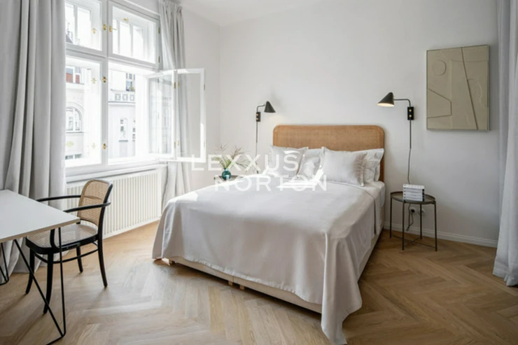 The property is located on the 3rd floor of a building without an elevator in the beautiful Prague 6 - Dejvice district, which offers all civic amenities and good transport infrastructure.The interior of the apartment consists of an entrance hall, living room with dining area, kitchen, bedroom, bathroom (shower and toilet), and separate dressing room. The apartment is furnished with kitchen appliances, wardrobes, a bed, a sofa set, a dining set, and a functional stove. A security system is also included in the apartment. Desirable Prague neighborhood consisting of first-republic apartment buildings. The location has great transport accessibility. Dejvicka metro station is within walking distance, as well as public transport stops. Thanks to good road connections, it takes 13 minutes by car to the motorway, 20 minutes to Vaclav Havel Airport and 5 minutes to the shopping and entertainment centre OC Novy Smichov. The train will take you to the centre of Prague in 12 minutes. In the neighbourhood you will find all types of schools - kindergarten, primary, secondary, high, international (International School of Prague, Prague British International School, Riverside School) and also all civic amenities (theatres, supermarkets, doctors' offices, pharmacies, restaurants, cafes, playgrounds, local shops). For leisure activities you can use the Letenska plan, Marie Terezie, Marianske hradby, Chotkovy sady parks or take a walk to Prague Castle. Right in the house there is a French bistro, fitness and massage in the street. The inquiring client agrees to pay a commission of 1 month's rent plus VAT. If you cannot view the property in person, we also offer you a video tour from the comfort of your home in real time via Messenger, WhatsApp and other communication platforms.
