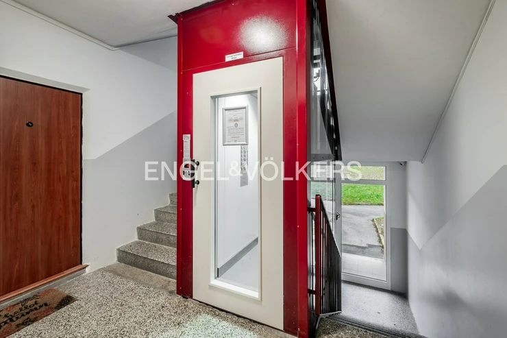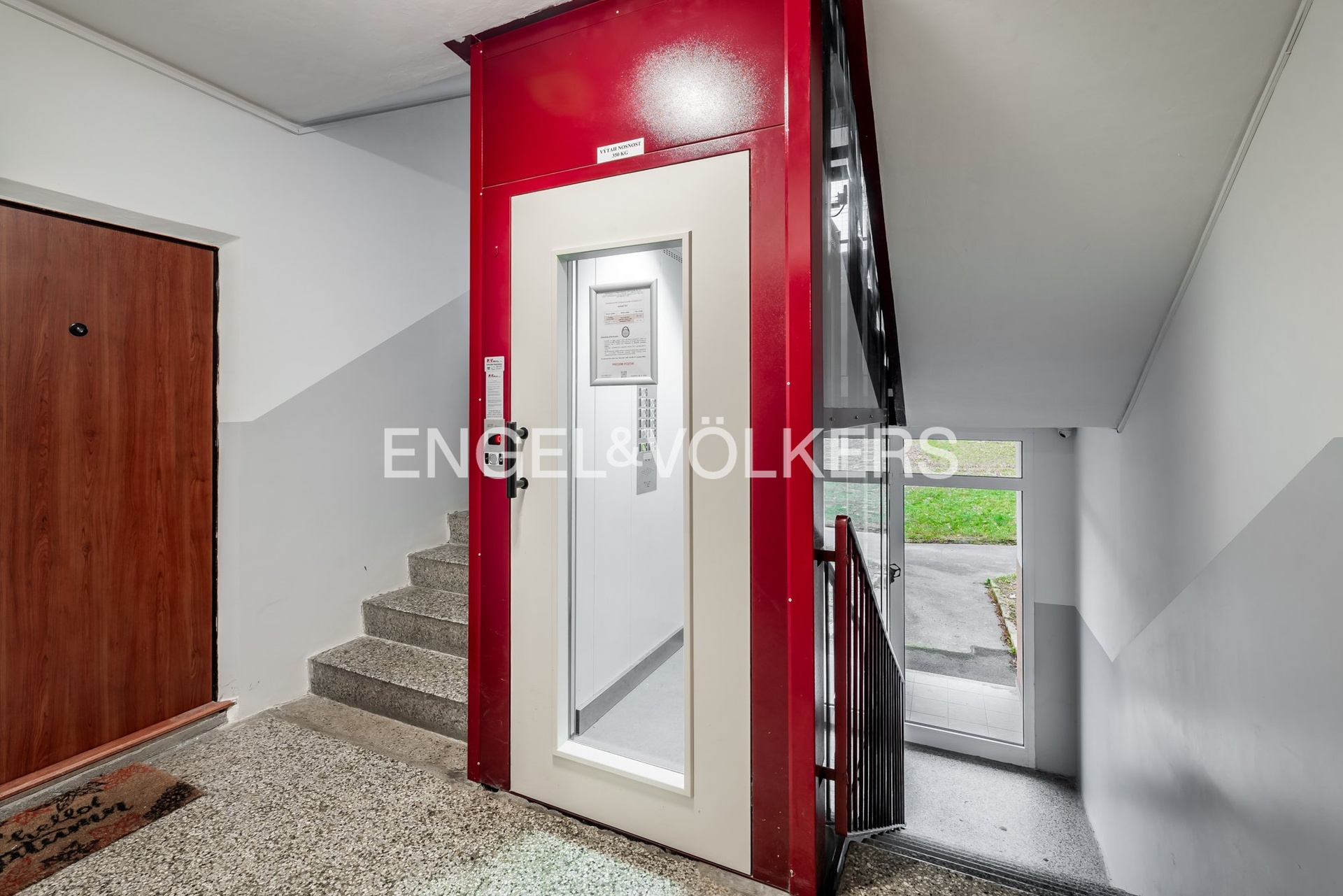 The building is well-maintained, with an elevator and quiet common areas. There is a very good possibility of parking in the immediate vicinity. The Kamýk location offers complete civic amenities, lots of greenery, sports facilities, and excellent transport accessibility to the city center.