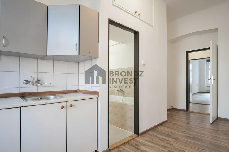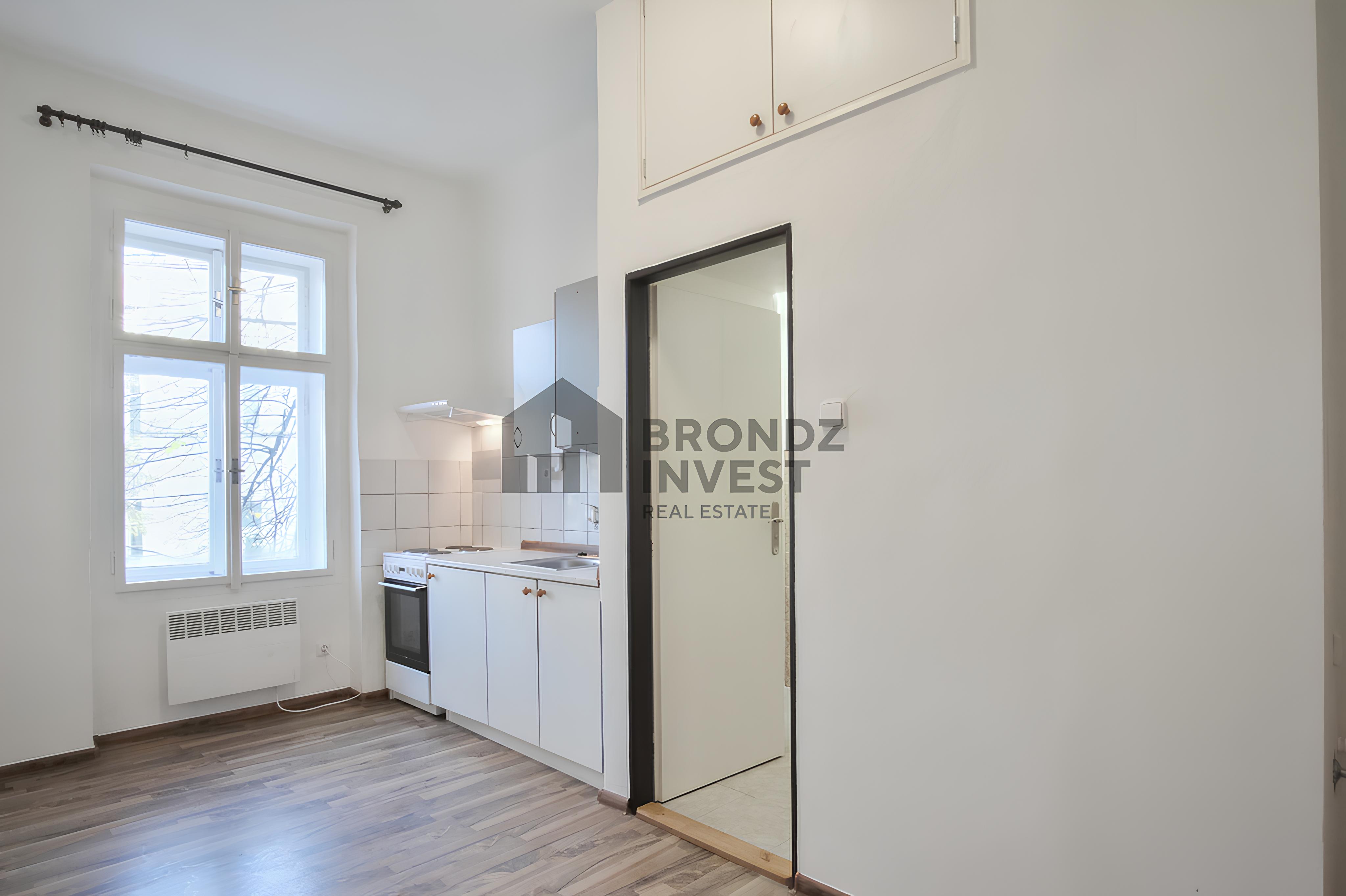We offer for rent a bright 1+1 apartment, located on the 2nd floor of a brick building in the attractive area of Prague 3 - Žižkov.
