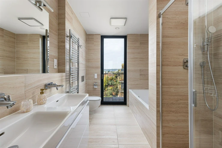 All rooms are air-conditioned, have underfloor heating, and fresh air in the apartment is ensured by a recovery system, with external blinds for shading.