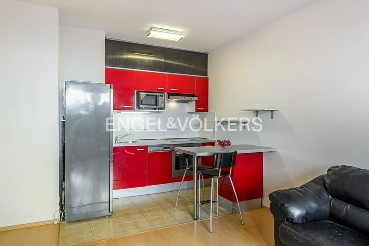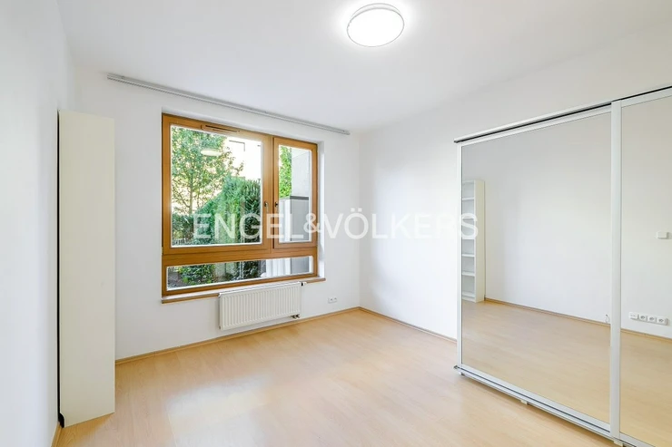 The apartment is practically designed so that you enter through the hallway, which has a large built-in wardrobe and a separate toilet. Living room with direct access to the terrace with garden and kitchen fully equipped with all appliances. The bedroom is with a large wardrobe and en-suite bathroom. The apartment is rented unfurnished.