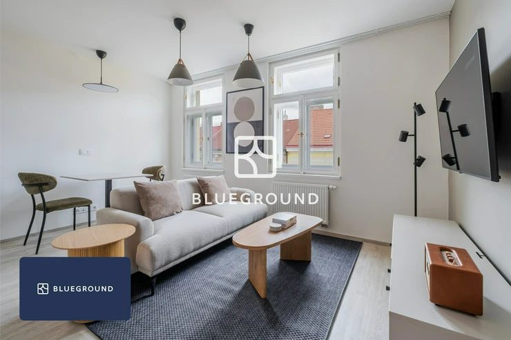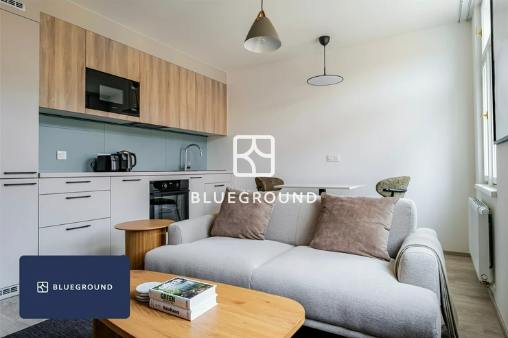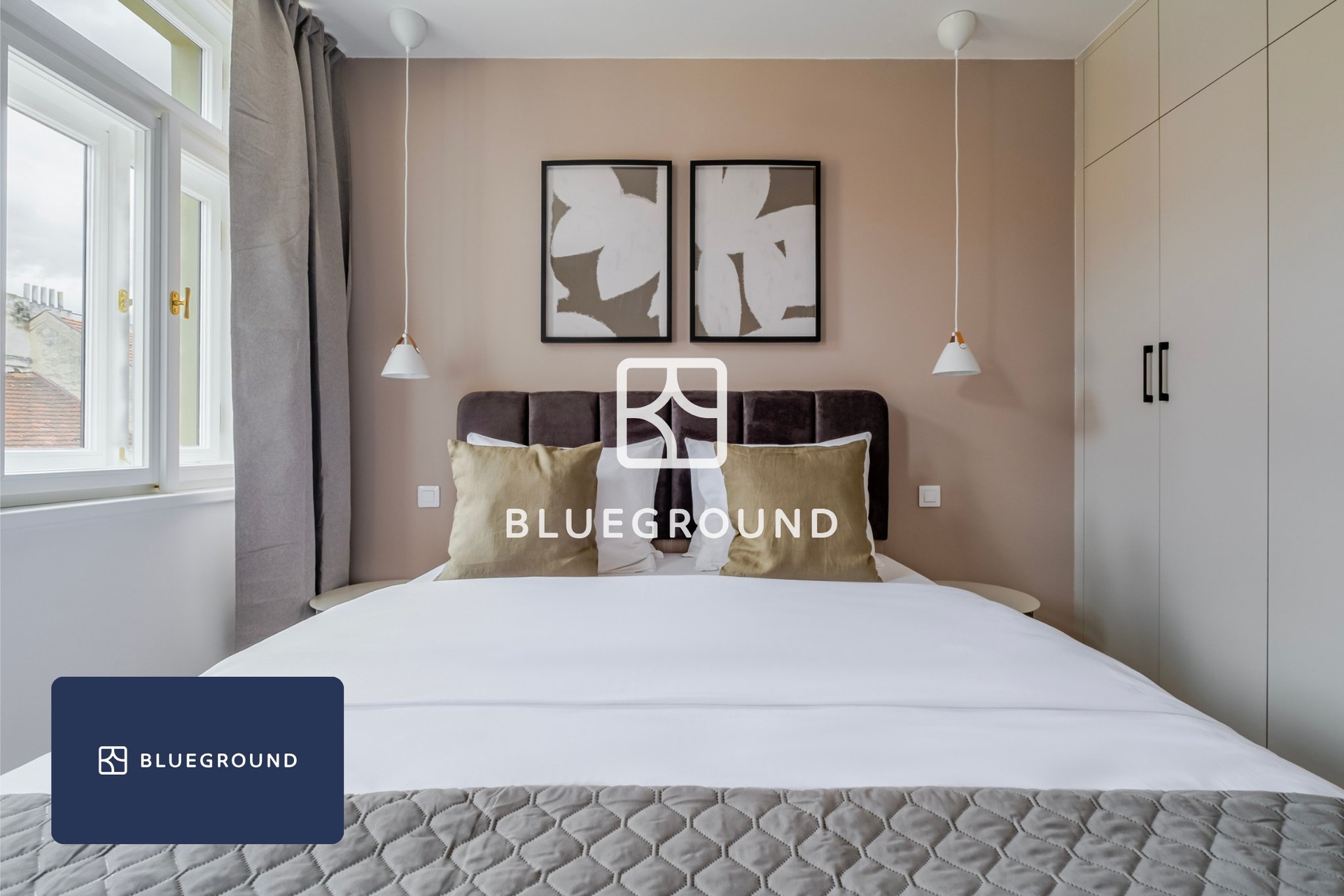 Blueground offers a fully furnished and equipped 2kk apartment in the quiet Nusle district of Prague 4, available for stays of one month or longer. The apartment is located in a peaceful residential area with quick access to the city center. With nearby parks, cafés, and local spots to explore, this apartment is an excellent choice for professionals or couples seeking a quiet, comfortable, and well-connected place to call home.