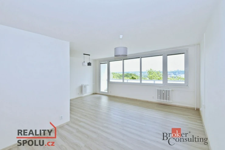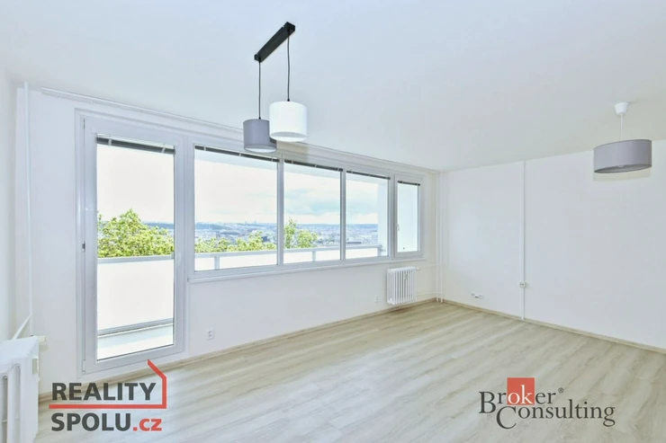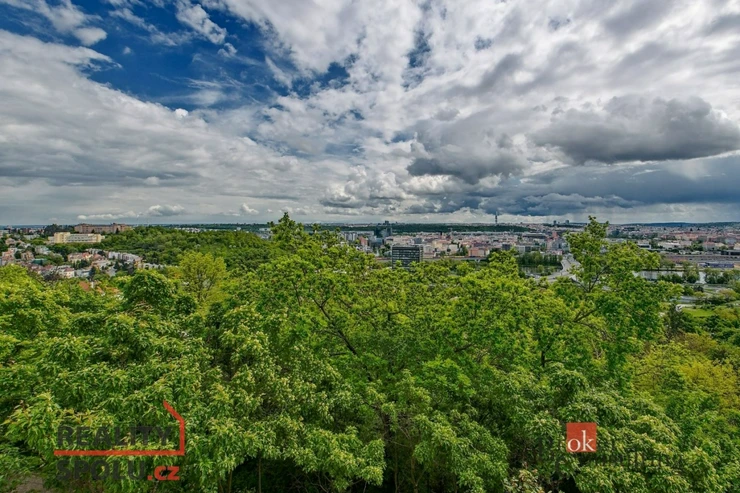 Dispozice bytu: prostorný a slunný obývací pokoj s jižní orientací a výhledem na Prahu, lodžie 6m2, kuchyňská linka s vestavěnými spotřebiči (myčka, sklokeramická el. deska, el. horkovzdušná trouba, lednice s mrazákem), předsíň s komorou, samostatná toaleta, koupelna se sprchovým koutem, umyvadlem a prostorem na pračkou, 2 x ložnice s okny orientovanými na sever. K bytu náleží sklep na patře. Okna jsou v bytě plastová, podlahy jsou vinylové a dlažby. PENB bude dodáno.