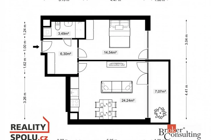 • Novostavba: Byt se nachází v energeticky úsporném domě (energetický štítek B).