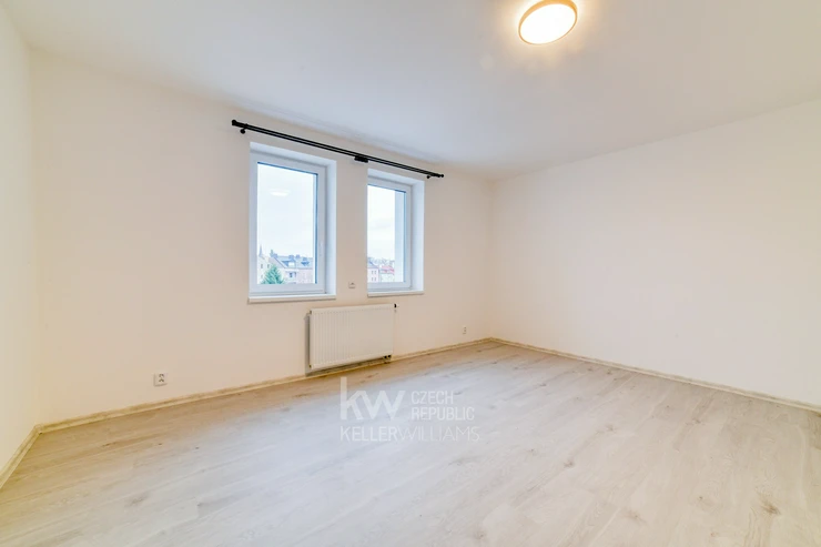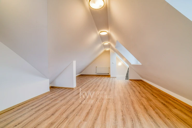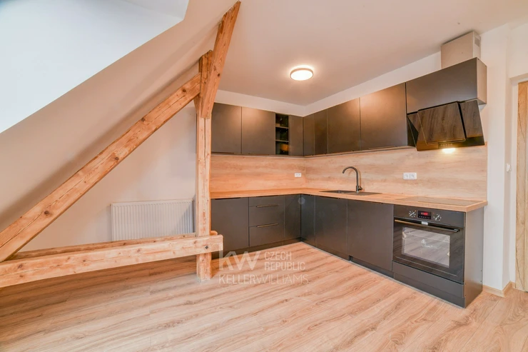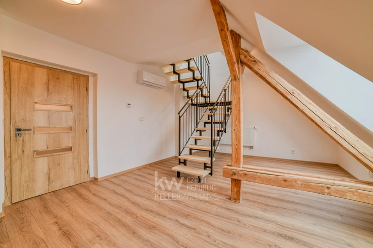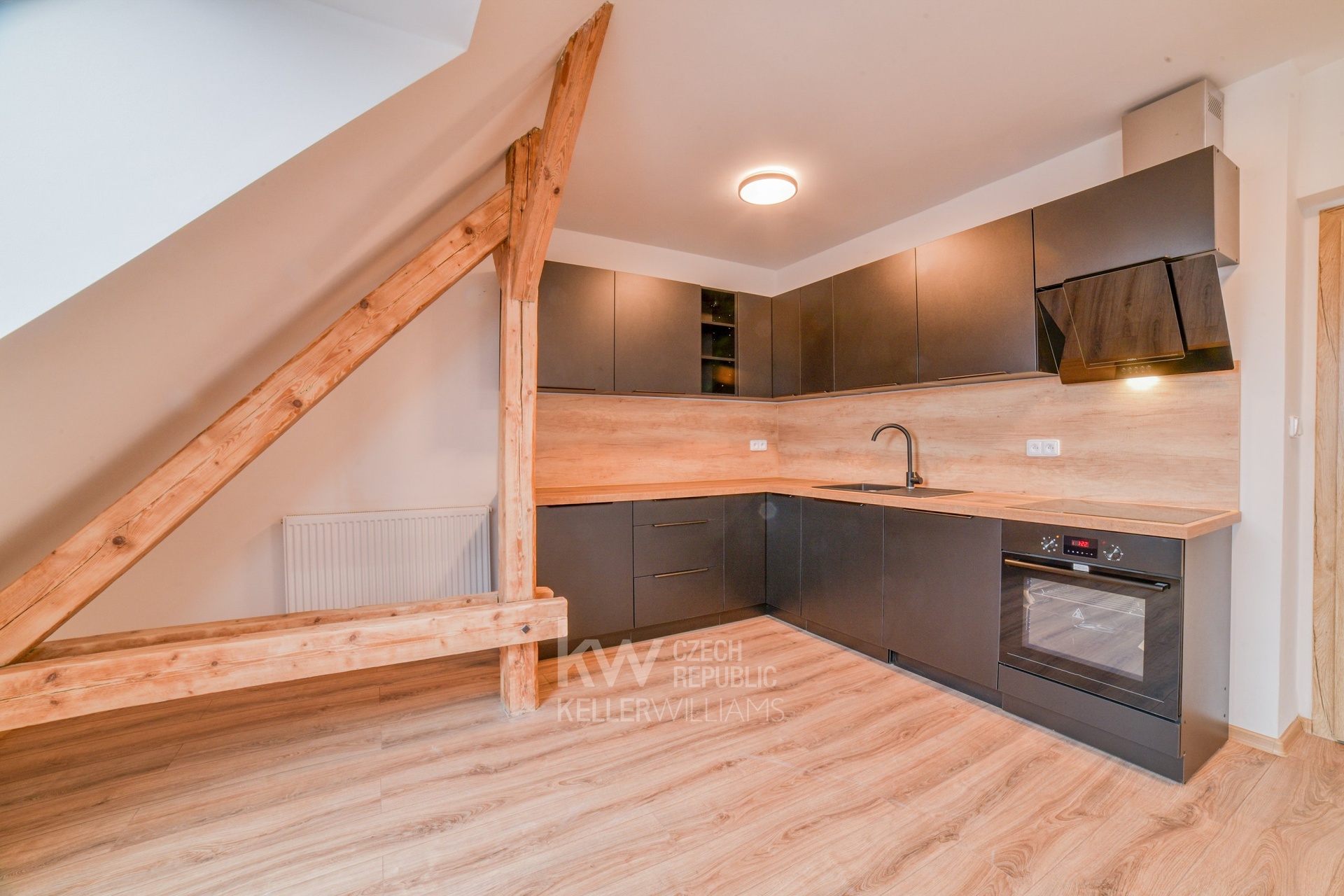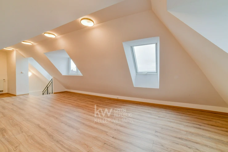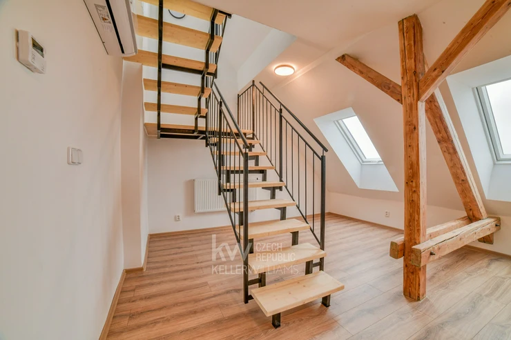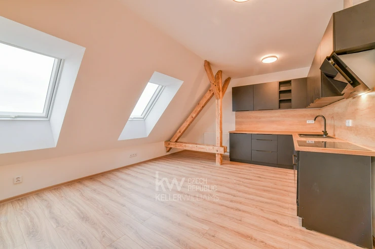Byt 2+kk atyp o výměře 68,5 m² s nájemným ve výši 15 000 Kč měsíčně + poplatky.