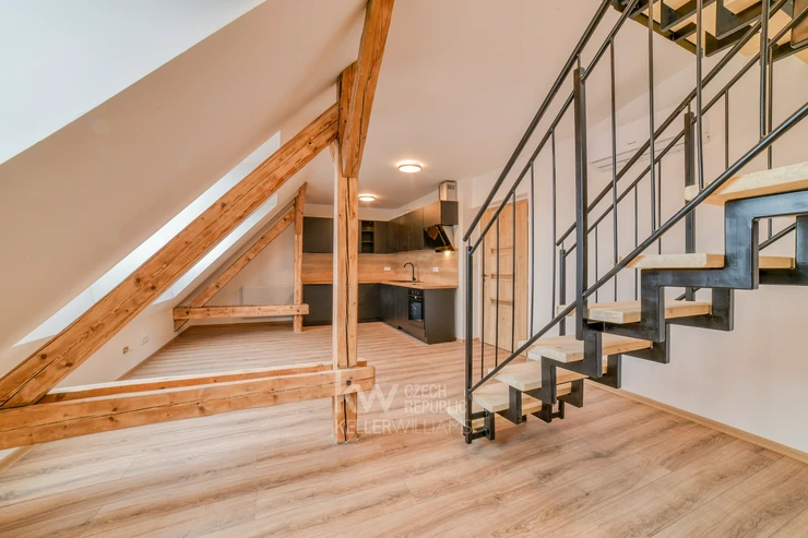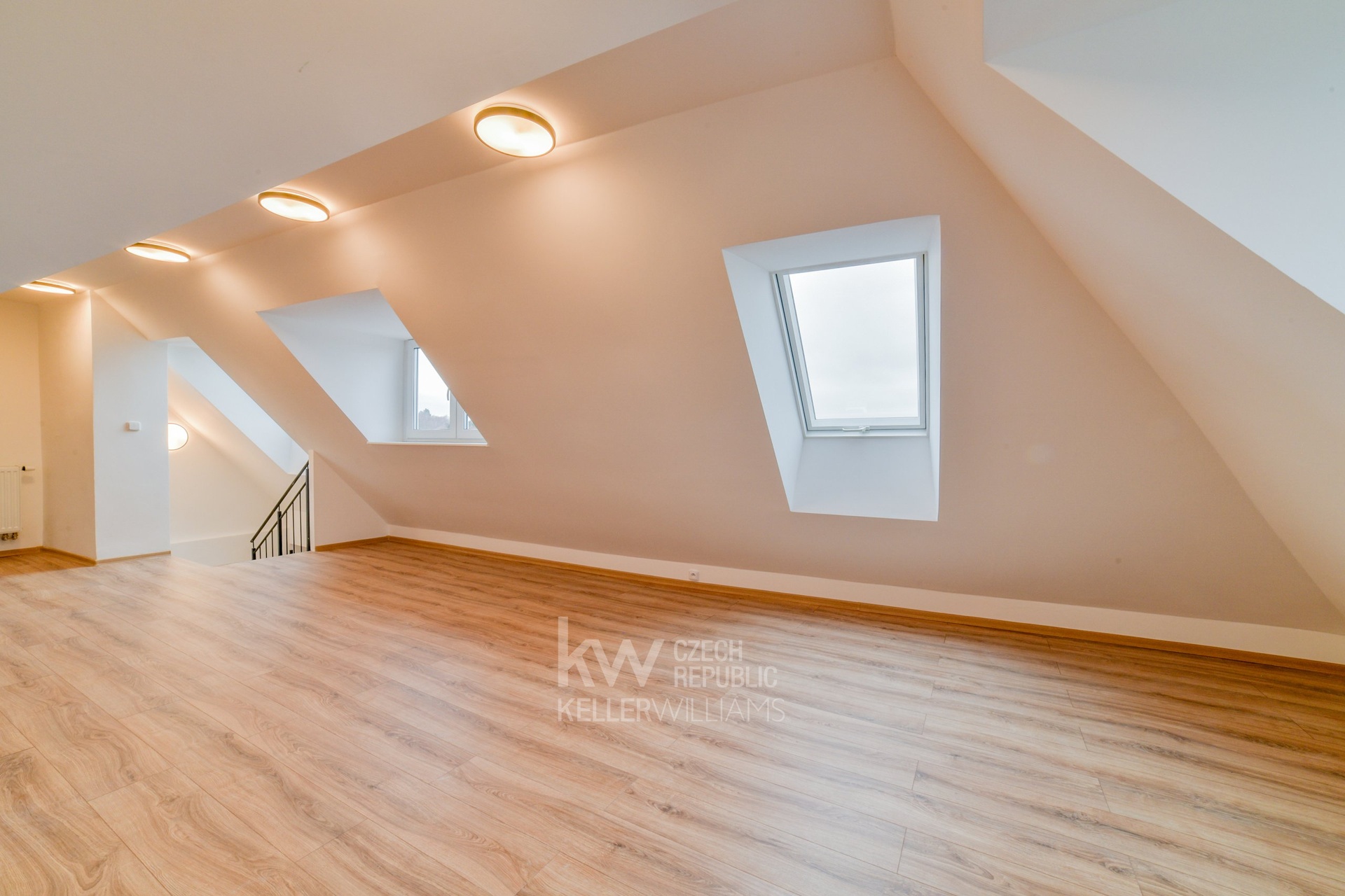 Atypický mezonetový byt o výměře 116 m² s nájemným 18 000 Kč měsíčně + poplatky.