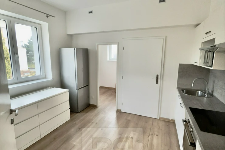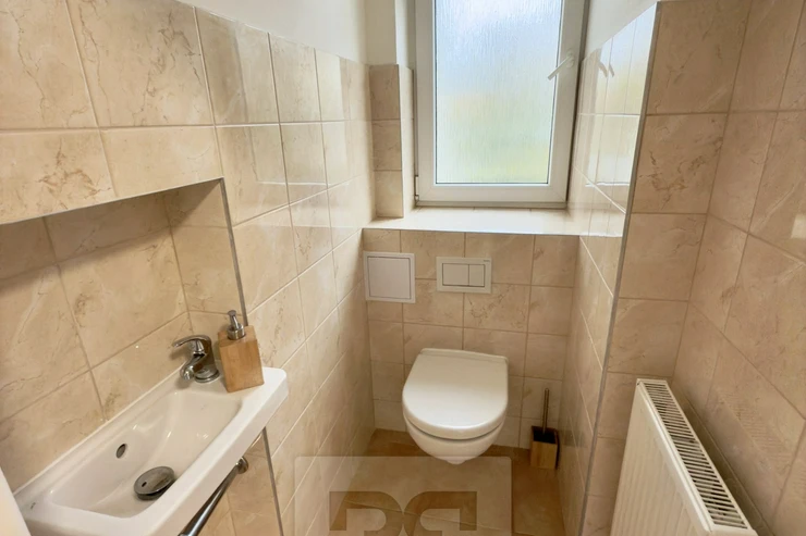 We offer for rent a 3+1 apartment with a living area of 120 m², located on the 1st floor of a smaller apartment building (only 4 apartments), in Nad Pomníkem street. The apartment consists of an entrance hall, separate toilet with sink, pantry, kitchen equipped with built-in appliances, including a dishwasher, technical room with preparation for a washing machine and dryer, which has a gas condensing boiler for water heating and heating, bathroom with shower and three spacious rooms. The apartment has a cellar. Tenants can use a 300 m² garden with seating and a portable fireplace.