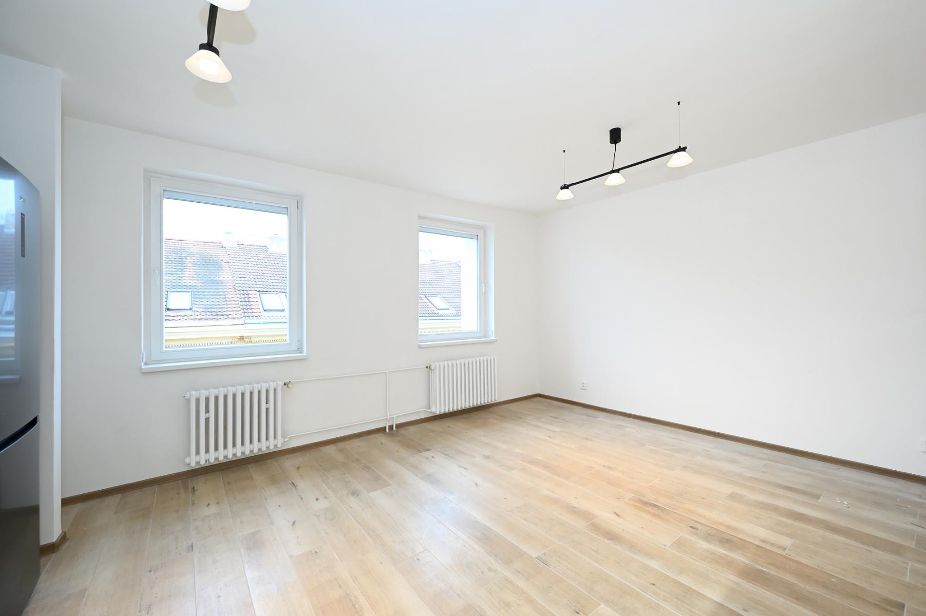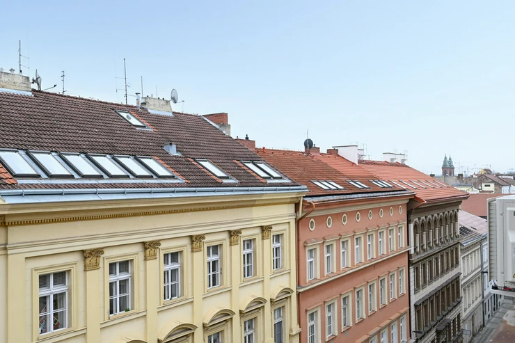 Brand new reconstruction of the 5th floor apartment in a quiet street near Petřín Park. Windows facing east, equipped with external electric blinds.