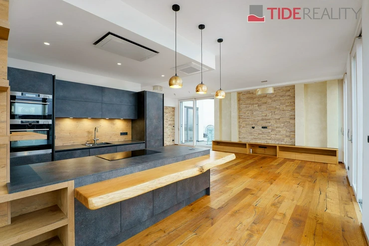Starting January 1, 2026, we are offering a luxurious and unique 260 m2 apartment in Vinohrady. The building is completely new, thoughtfully integrated into the surrounding traditional Vinohrady area. The apartment is located on the 8th and 9th floors, accessible by elevator and consists of: a fully equipped modern kitchen, living room, 4 bedrooms, a hallway, 2 bathrooms and toilets, an additional separate toilet, 2 dressing rooms, an internal staircase, 2 balconies, and a basement storage room. The sublease includes a parking space in the courtyard and access to a designated part of the rooftop terrace, which offers a stunning 360-degree view of all of Prague. The apartment is unfurnished, with floors, bathrooms, and fixtures of the highest possible quality. The rent is 140,000 CZK per month, plus utilities and energy costs of 20,000 CZK per month.