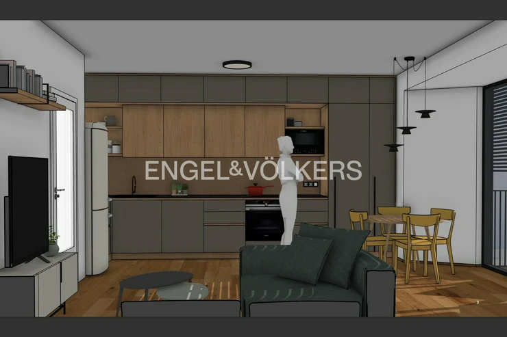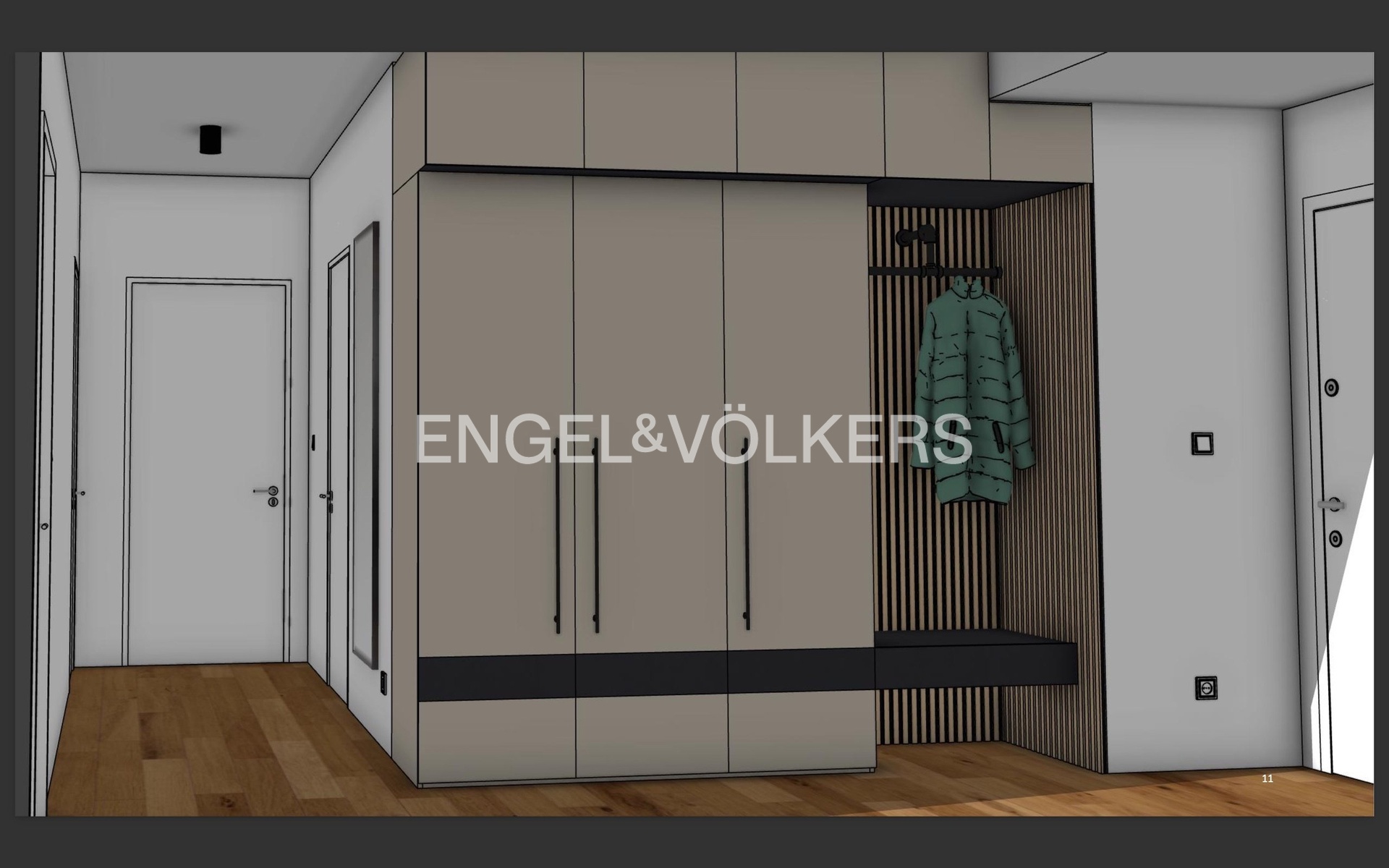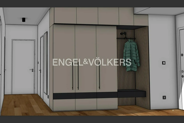 The apartment is equipped with heat recovery, wooden floors, and outdoor electric blinds. The apartment comes with a cellar and one parking space.