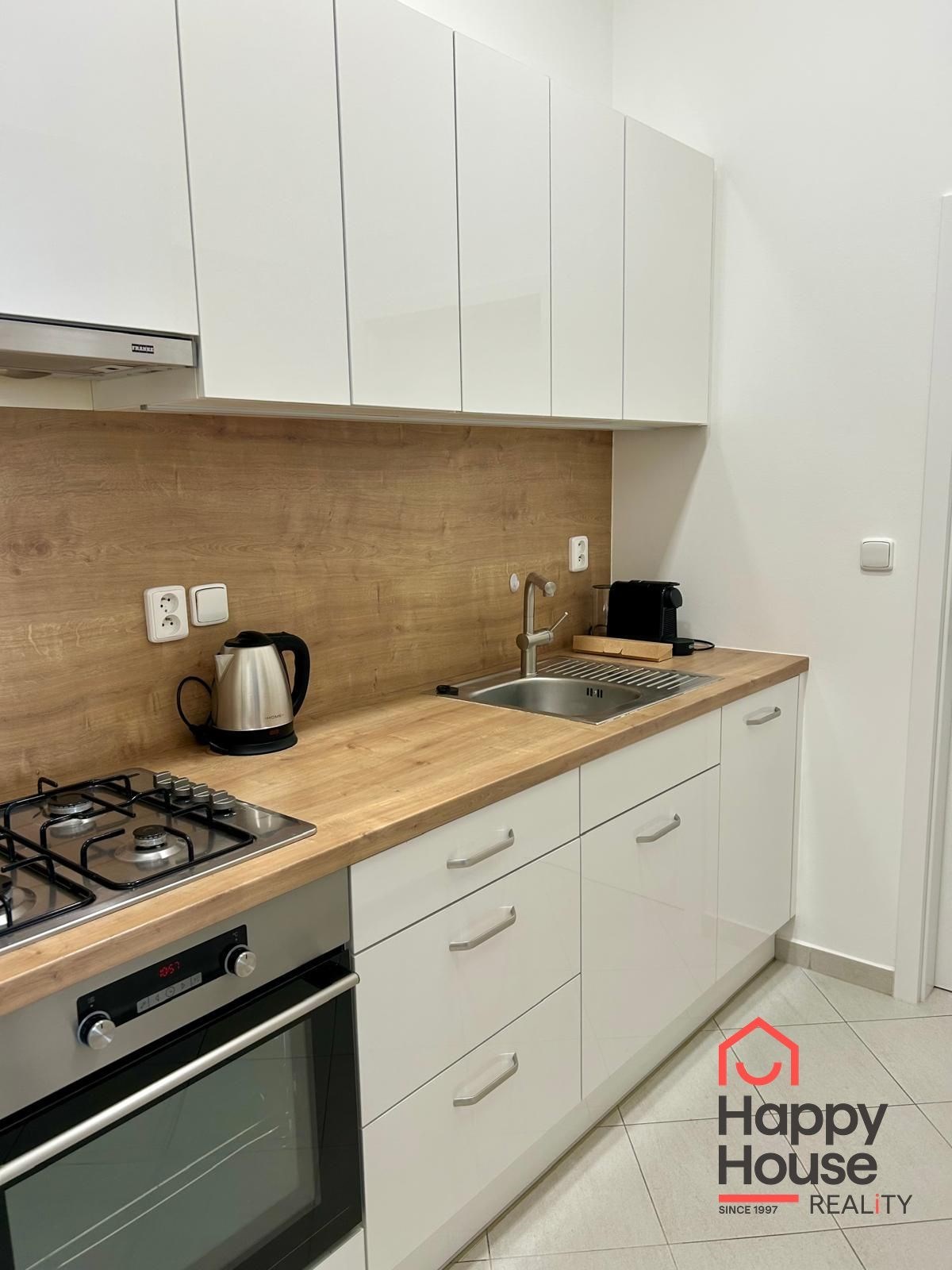 We exclusively offer for rent a furnished one-bedroom apartment for medium-term rental on the ground floor of a four-story brick row house with an elevator in the sought-after area of Prague 5 - Smíchov.