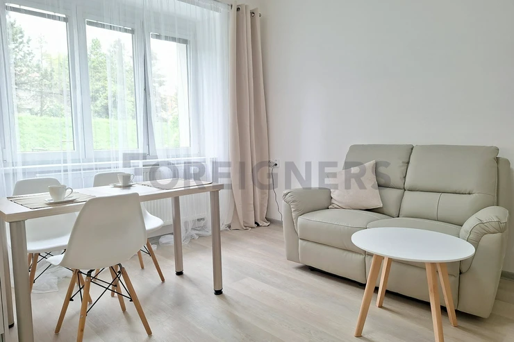 Total monthly rent is 16 000 CZK plus 4 000 CZK for services, such as water, heating, electricity and internet. The Security Deposit is in the amount of 2 monthly rents. The minimum rental period is 1 year with the possibility of further prolongation.