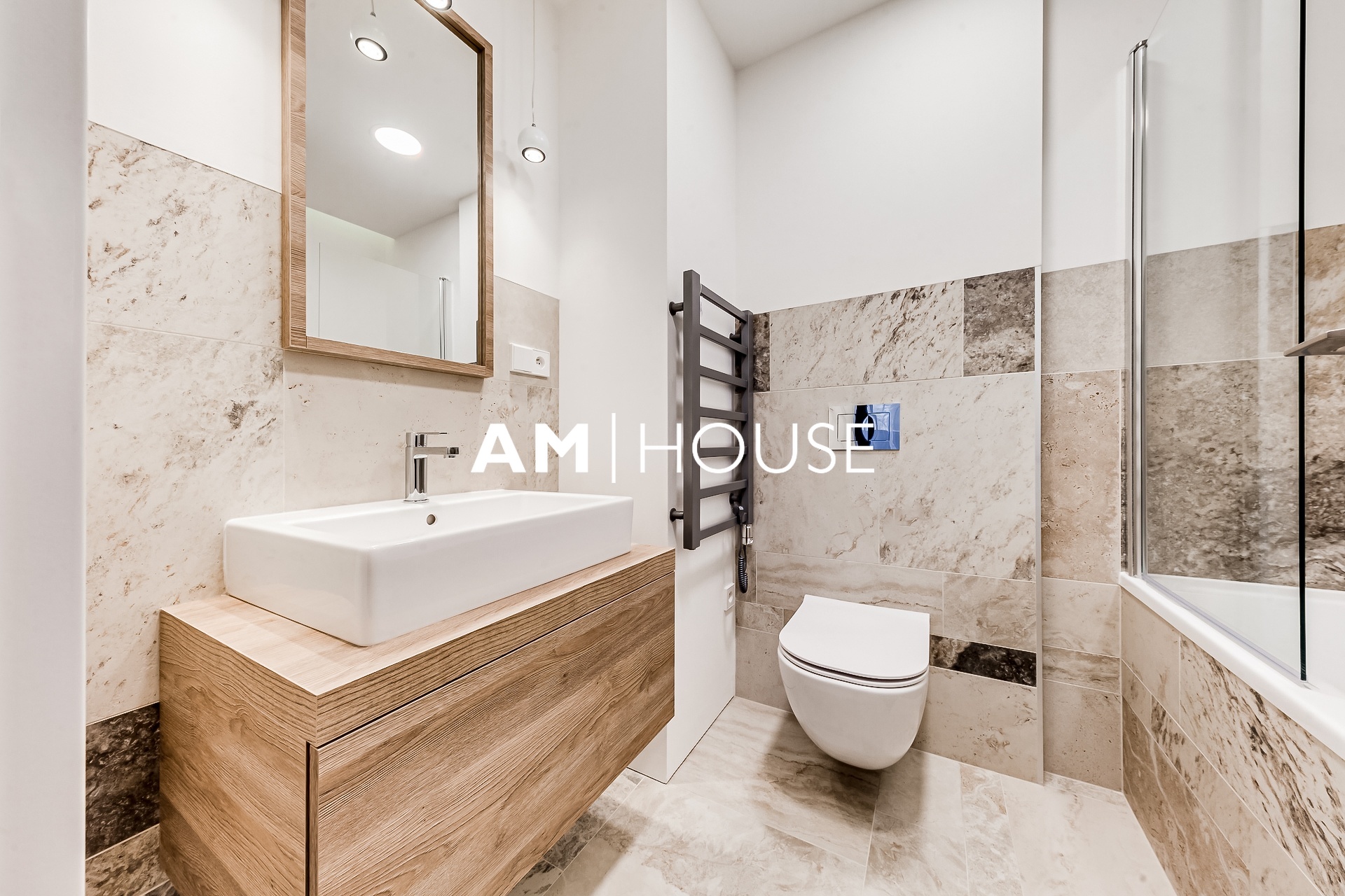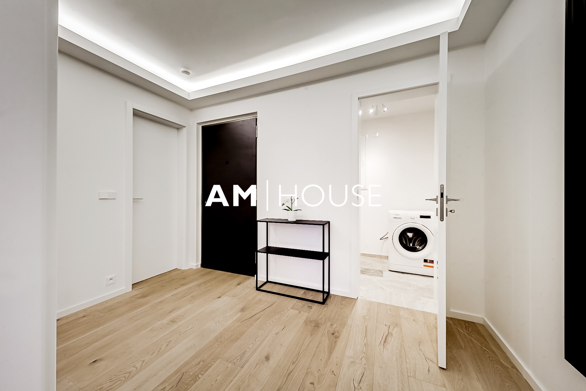 Interiér bytu navržen a realizován renomovaným studiem, vyznačuje se vysokou kvalitou použitých materiálů i vybavení a výborným dispozičním řešením. Kompletně zařízený a stylový byt se nachází v novostavbě. V bytě je kompletně zařízený včetně kuchyňského koutu a spotřebiče.