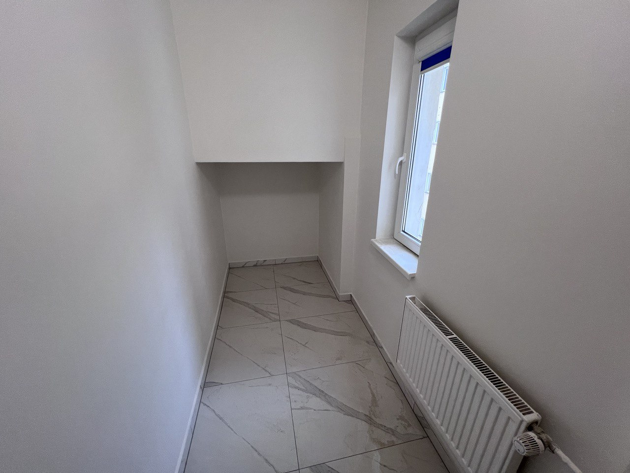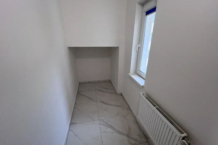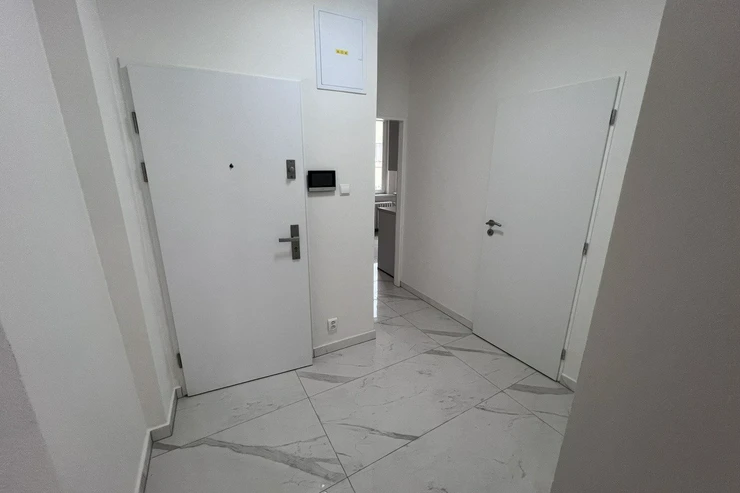 Interiér bytu zahrnuje prostorný obývací pokoj, samostatnou kuchyň se spíži, kuchyň je vybavena spotřebiči (lednice, trouba s varnou deskou myčka), ložnici a koupelnu s vanou a WC. Všechny místnosti jsou světlé a nabízejí dostatek prostoru pro pohodlné bydlení.