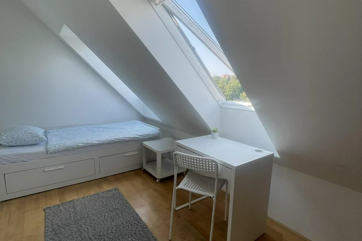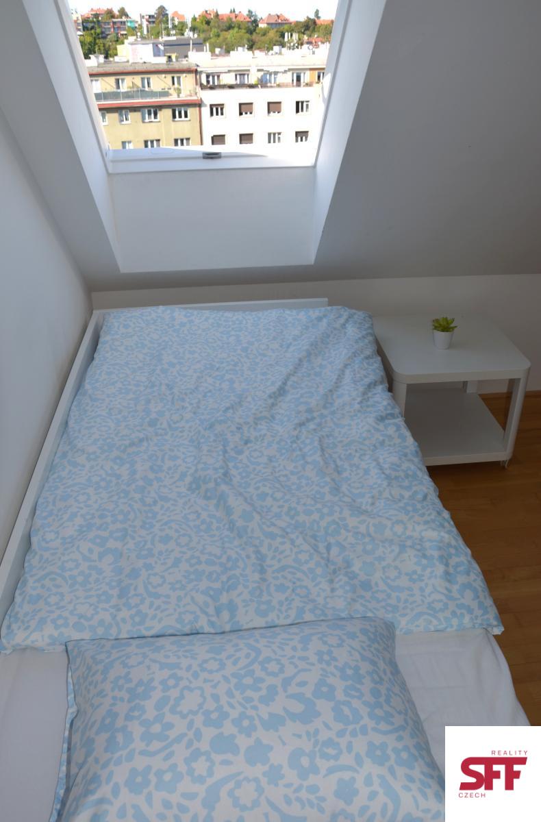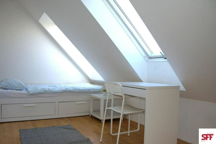 We offer a bright and cozy 11 m2 room for medium- or long-term rent in a shared apartment with a total area of 76 m. The apartment is located on the 5th floor of a well-maintained historic building without an elevator, in the attractive Prague 6 Pohořelec area, just a few minutes walk from Prague Castle.