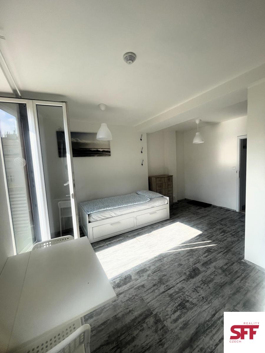 We offer a bright and furnished studio (1+kk) of 21 m with a 2.5 m balcony for medium- or long-term rent. The apartment is located on the 4th floor of a well-maintained historic building without an elevator, in the attractive Prague 6 Pohořelec area, just a few minutes walk from Prague Castle.