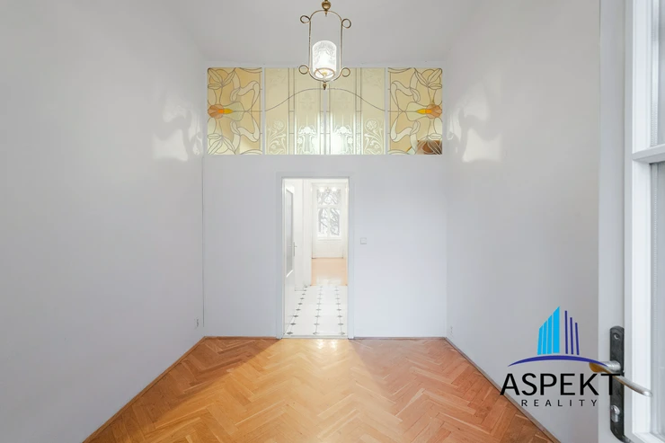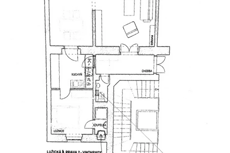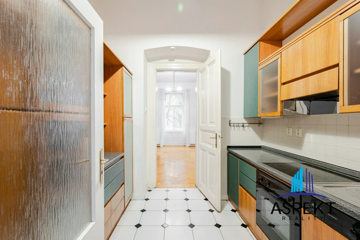 We offer for rent a spacious 2 + 1 apartment located in Vinohrady on Lužická Street, Prague 2. This partially furnished apartment has a total usable area of 66 m² and is situated on the first floor of a historic building.