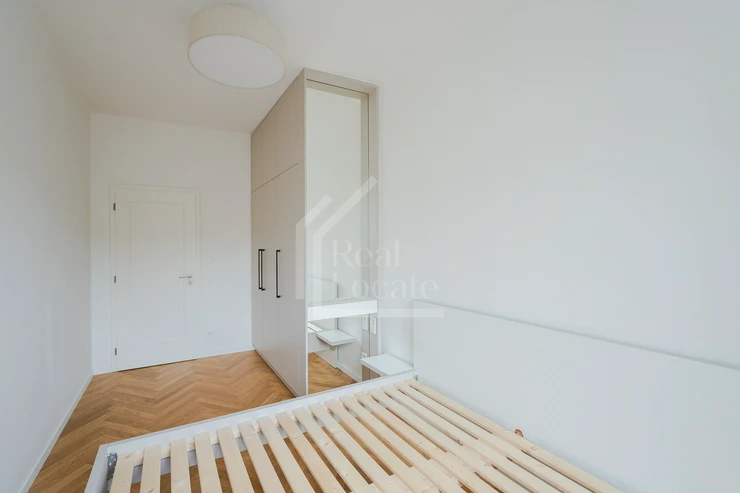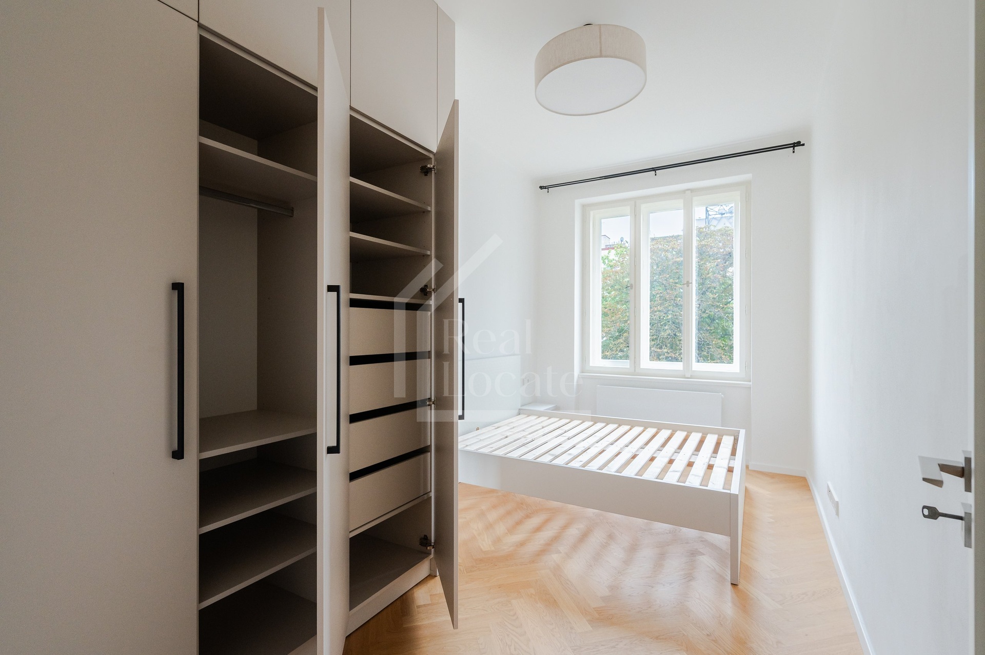 The residence has undergone a complete renovation and offers stylish boutique living with premium services. High-quality oak parquet floors, elegant casement windows, and a representative entrance door complement the sophisticated common areas with details in marble, wood, bronze, and glass. The apartment is heated by gas (water heating and heating). The building has an elevator, a shared courtyard with a garden, and the aforementioned sauna for relaxation after a busy day.