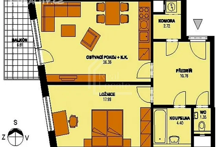 Plně vybavený – nábytek i spotřebiče, včetně pračky
