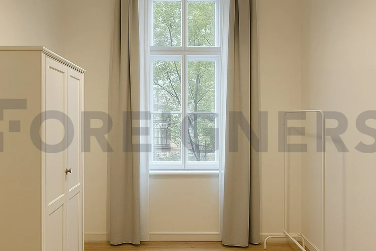 A bright and spacious 18 m² room is available for a BOY for rent in a 4+kk apartment (100 m²) located on the elevated ground floor of a beautifully renovated building on Jaselská Street, in the popular Veveří district of Brno-střed.