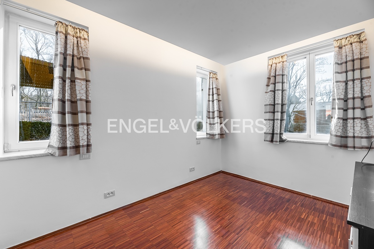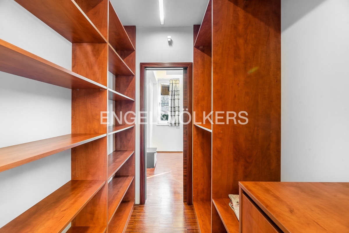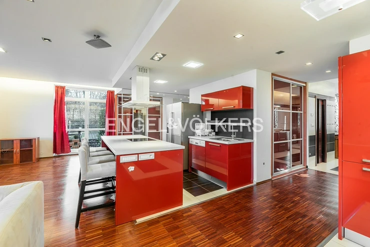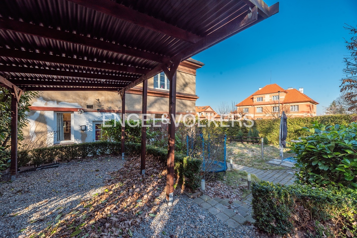 The apartment is located on the first floor of a well-maintained apartment villa with a garden and parking space. A pleasant benefit is the location, which is literally just a few steps from Cibulka Park. The heart of the whole apartment is the bright living room with fully equipped kitchenette and charming ceilings. The bedroom has a built-in audio system and preparation for TV, there is also a passage to a spacious dressing room. The bathroom has a massage shower along with a whirlpool tub. The toilet is separate. The apartment has built-in wardrobes, a utility room, a large garden with a private entrance to the apartment, a covered parking space and a cellar.