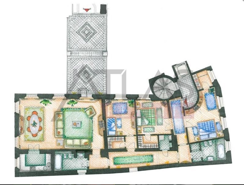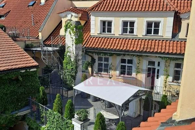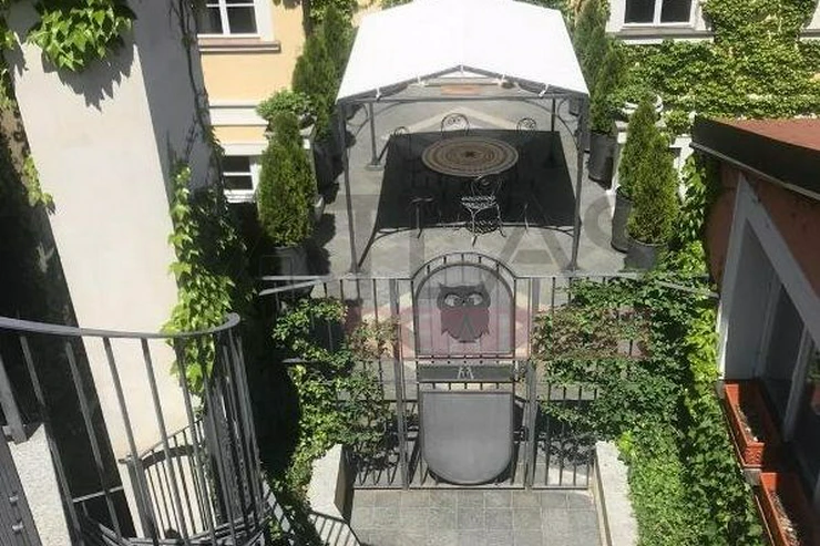 Rental of an apartment 4+1, 178 m2, on the 2nd floor. Prestigious baroque era apartment, spacious living room with dining area, interior design and finishing work at a very high level. Two entrances, 35 m² terrace (living room, dining room, kitchen, 3 bedrooms, 2 bathrooms, pantry, 3 walk-in closets). Partially furnished, suitable for 6 people. Two entrances: the first directly from the elevator. Living area: living room with dining area, fully equipped kitchen, pantry.