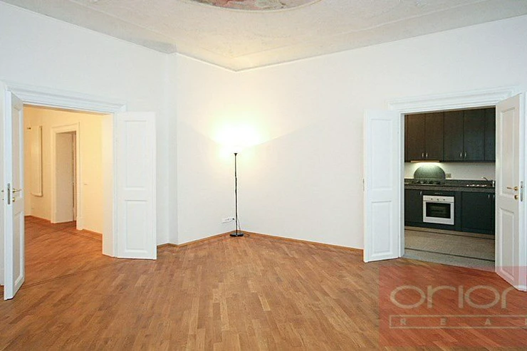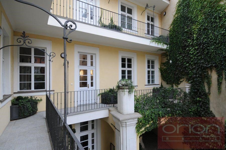 We offer for rent a luxurious bright three bedroom apartment with a spacious terrace on the 2nd floor of a renovated baroque house with an elevator in a prestigious location of Prague 1. The house and the apartment have been qualitatively renovated while preserving many of the original architectural features. The partially furnished apartment has an area of 175 sqm and offers an entrance hall, fully equipped kitchen, living room, dining room, 3 bedrooms (each with its own dressing room), 2 bathrooms - bathtub and shower, 2 toilets, storage room and a terrace of 35 sqm facing south into the garden. The apartment has 2 entrances, one of them is directly from the elevator. The apartment is equipped with wooden parquet floors, Italian ceramic tiles and tiles, stucco, built-in wardrobes, washing machine, dryer, dishwasher, gas heating, internet and satellite connection. The apartment offers beautiful views of Prague Castle and Petřín Hill. Attractive location of Malá Strana, all civic amenities and excellent transport connections. The apartment is located just a few minutes from the Malostranské náměstí tram stop. Nearby are Lobkovická Garden, Malostranská Garden, restaurants, bistros.