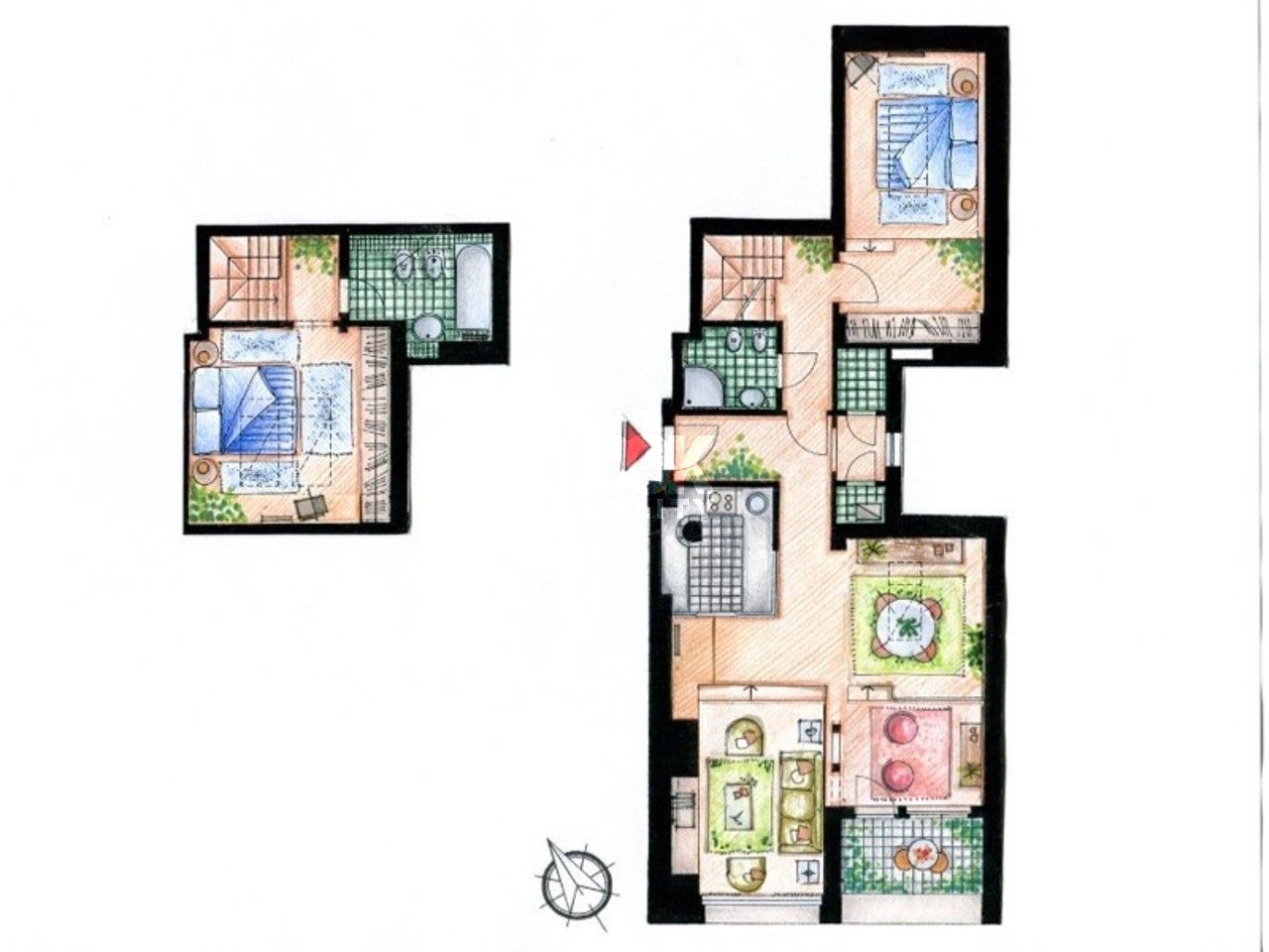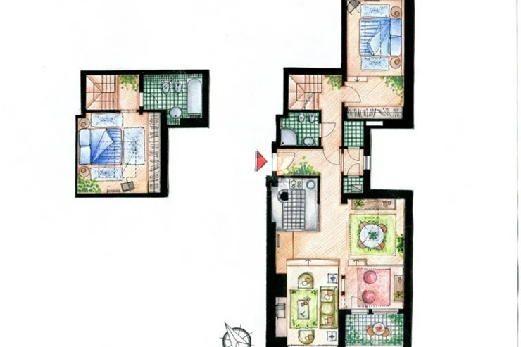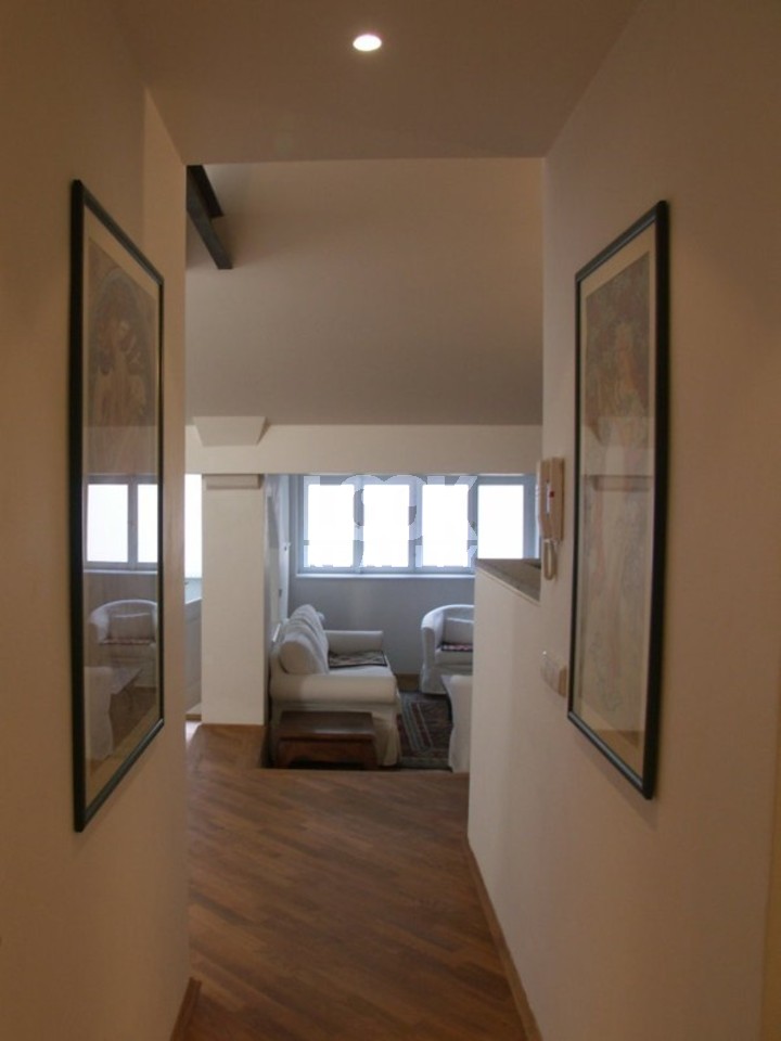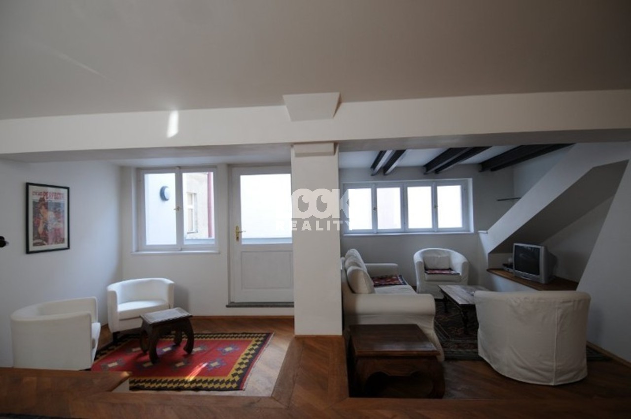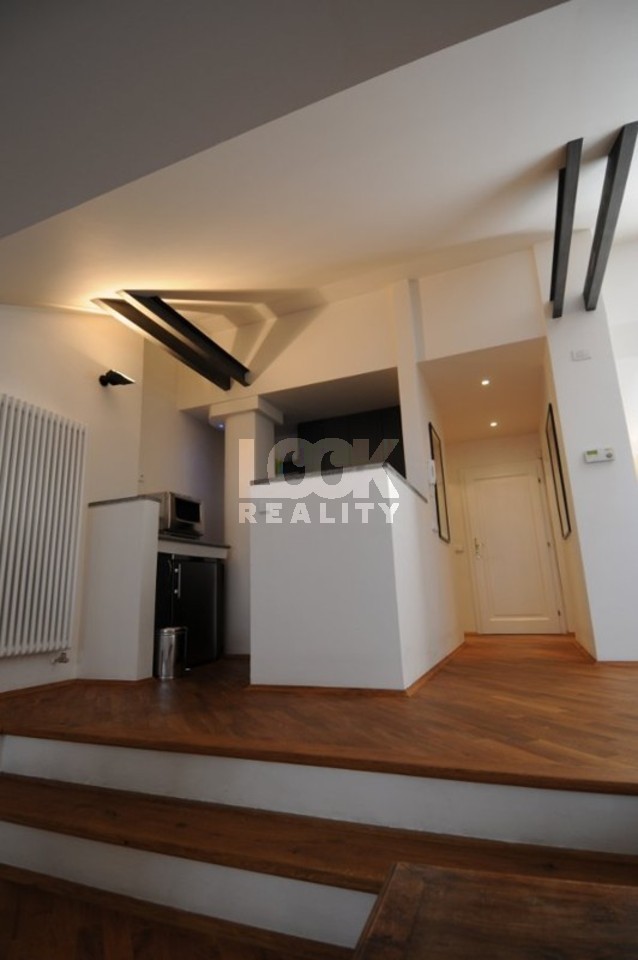 Beautiful apartment with balcony near the metro station Karlovo namesti. We offer for rent a beautiful duplex apartment 3+1 with a size of 96 m2, which is located on the 5th and 6th floors of a building in the street Odboru. The apartment is rented fully furnished and consists of: 1st floor: entrance, dining room and living room with (with TV, satellite and DVD) access to the balcony, fully equipped kitchen with bar, bathroom with bathtub, large bedroom with double bed and built-in wardrobe closet. 2nd floor: hall, bathroom with bathtub, large bedroom with double bed, built-in wardrobe and dressing room. The apartment has a beautiful view of the roofs of Prague and there is a small balcony with ivy next to the living room, an original open kitchen situated towards the living room, beautiful and high-quality furnishings, oriental carpets. The house is located in a locality with excellent transport accessibility. The metro station and the tram stop Karlovo namesti and the tram stop Myslikova are a few minutes' walk away. There are many restaurants, bars, shops, schools and medical facilities nearby. All civic amenities. Nearby there is a park on Karlovo namesti - a place suitable for walks or sports. Beautiful housing, we recommend it. The price for short term rental could be changed.
