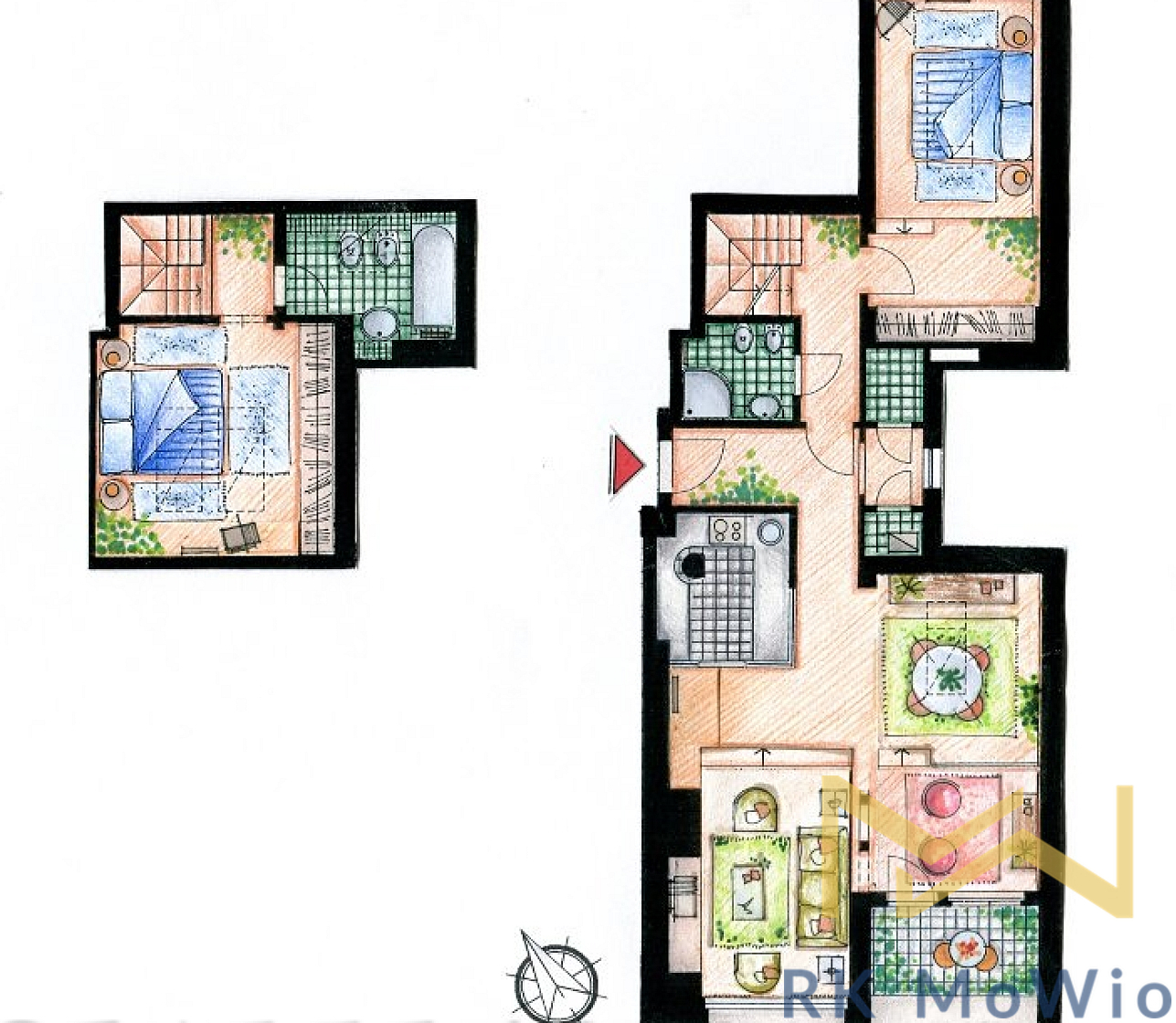 We offer for rent a fully furnished duplex apartment, unit no. O12-2/5, with a layout of 2 bedrooms, a floor area of 96 sqm, and a balcony of 4 sqm. Situated on the 5th floor (6th above-ground level) of a building with an elevator, the property is located on Odborů Street in the sought-after area of Praha 2 - Nové Město.