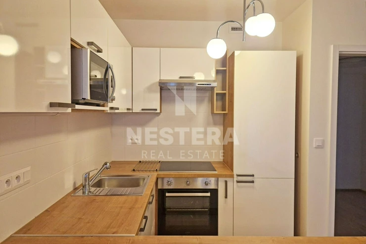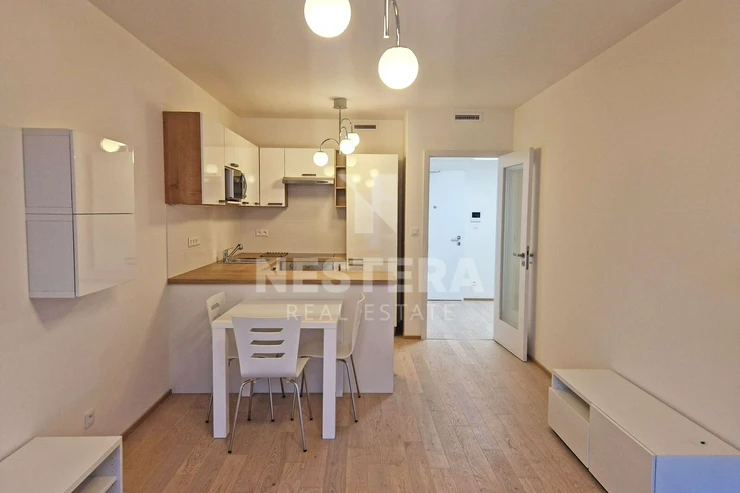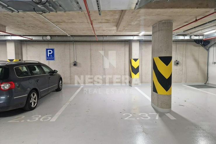 The apartment includes a 3.6 m2 balcony and a basement storage unit. Another great advantage is the garage parking space on the second basement level (for a fee of CZK 1,500/month).