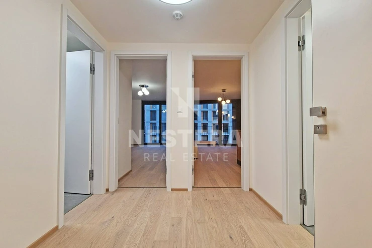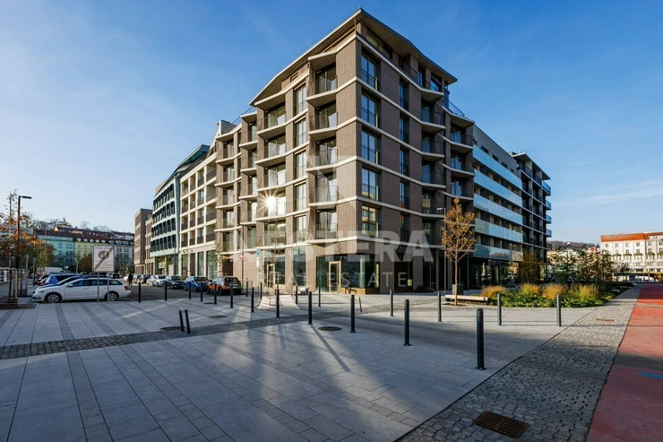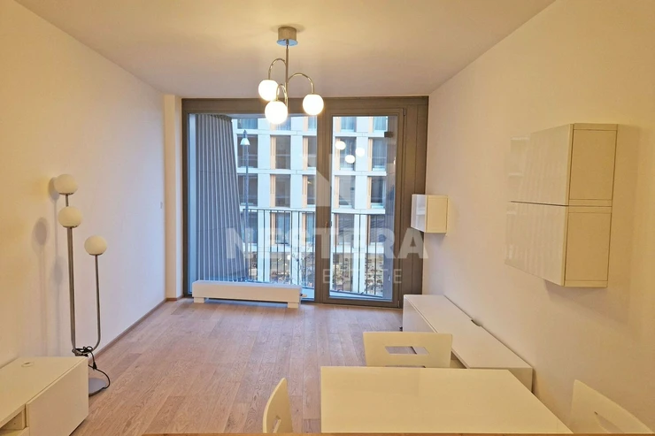 Rent a beautiful, brand new, 2+kk/balcony apartment with a floor area of 56 m2 with a garage parking space and cellar in the Smíchov City project from the developer Sekyra Group.