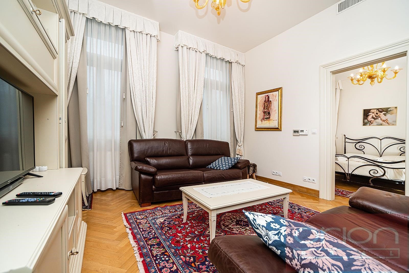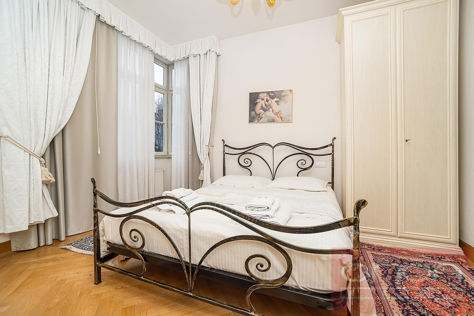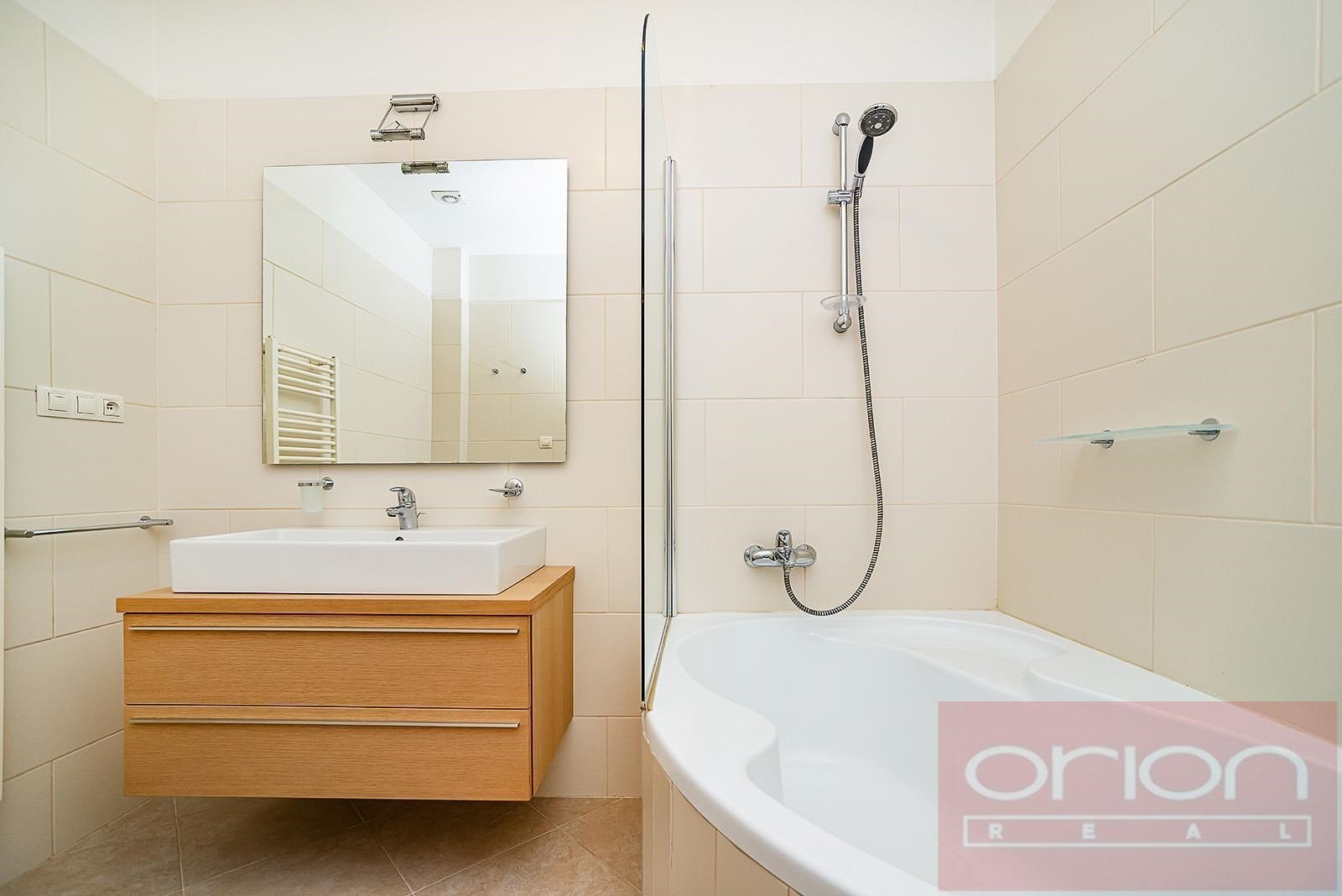Luxurious fully furnished one bedroom apartment in the residence apartment building after reconstruction. Great location, near the park and with easy connection to the center. Total area is 72 sqm offers entry hall, living room connected with a fully fitted kitchen, bedroom, bathroom, bidet, washing machine, WC. TV, satellite, air-conditioning, videotelephone, 24 hours security. Available is swimming pool in the backyard, sauna and private garden. The house is located in a very nice location in Vinohrady, there are all civic amenities and excellent transport accessibility by car and public transport. The metro station of line A Náměstí Míru and tram stops are a few meters away, the bus stop is right next to the house. You can take a pleasant walk to the popular park Riegrovy sady or to Wenceslas Square. The surroundings offer restaurants, cafes, shops, cultural facilities and other services. There are also parking places for rent from 400 Euro + VAT per month.