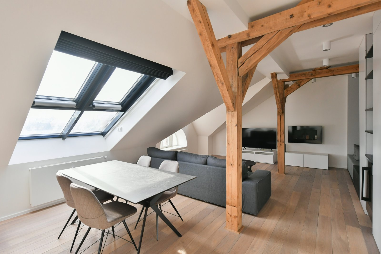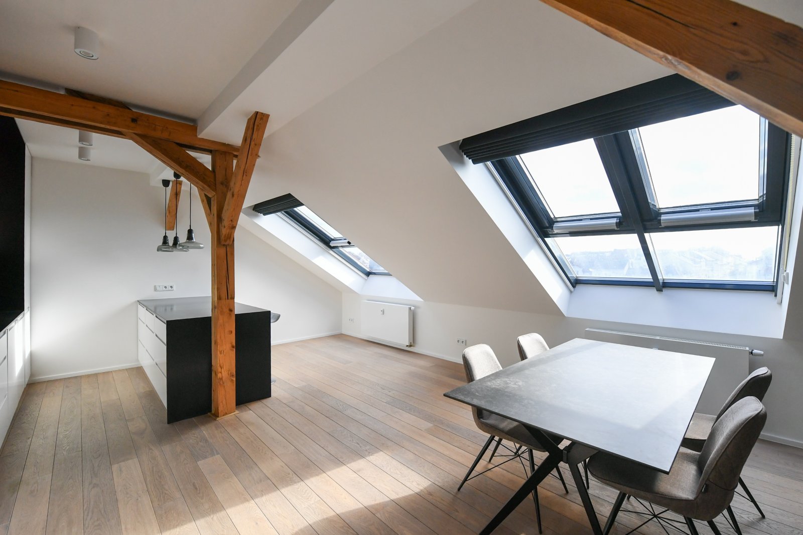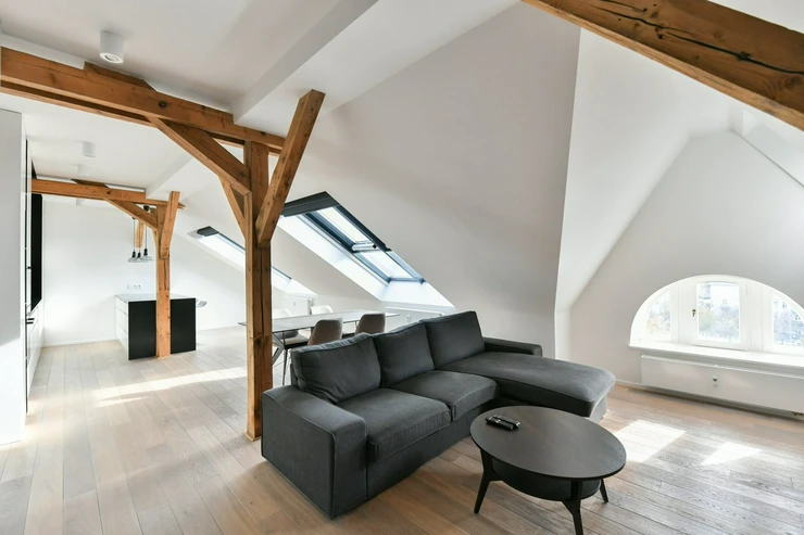 We offer for rent a luxurious air-conditioned two bedrooms apartment on the 5th floor of a completely renovated Art Nouveau building with an elevator, in the sought-after location of Prague 3 - Vinohrady, just a few steps from the popular Riegrovy sady Park. The partly furnished apartment with a total area of 156 sqm offers an entrance hall, a living room connected to a fully equipped kitchen, 2 bedrooms, a pantry, a bathroom with a shower and a separate toilet. The floors have oak parquets and tiles, the apartment is equipped with built-in wardrobes, a wine cellar, a washing machine, a dryer, a security entrance door, and a gas boiler. Attractive location of Vinohrady with all amenities and excellent transport links. There are many restaurants, bars, bistros, local shops, Flora shopping center in the vicinity. Farmers' markets are regularly held on Náměstí Jiřího z Poděbrad square. The apartment is located just a few minutes from the tram stop and the Jiřího z Poděbrady metro station. The surroundings offer plenty of greenery, ideal conditions for sports and relaxation in Riegrovy sady park. Rent 3.665 EUR. The parking must be rented with the apartment, the fee is 6.500 CZK +VAT21% per month.