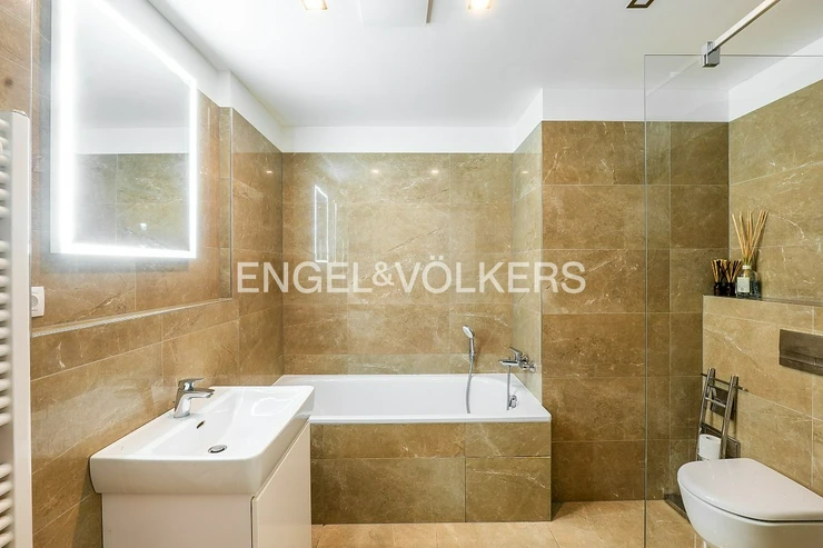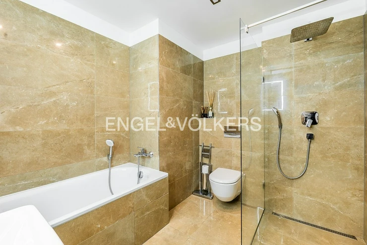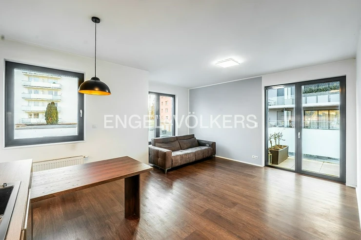 We offer for long-term rent a new and practically designed apartment with a 2+kk layout in a quiet residential area - Košíře. The apartment is located in the Malvazinky residence development project and its location provides excellent transport accessibility to the center or to Šalamounka Park, which is a 5-minute walk away. The apartment features a kitchen fully equipped with all appliances, storage space, a washer and dryer in the utility room, a cellar unit, automatic external blinds, and a parking space in the underground garage.