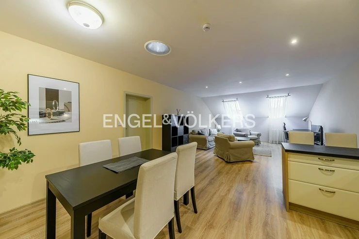 From 1. 3. 2026 we offer a spacious bright apartment for rent 3+kt (93 sqm) located on the third floor of a brick building with an elevator in the prestigious location of Vinohrady. The apartment is fully equipped. The kitchen has an electric cooker, oven, fridge, freezer, dishwasher, microwave, toaster, and kettle. The bathroom has a shower, washing machine, and dryer; the toilet is separate. There are two bedrooms in the apartment. Each room has its air conditioning.