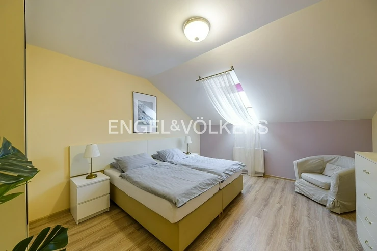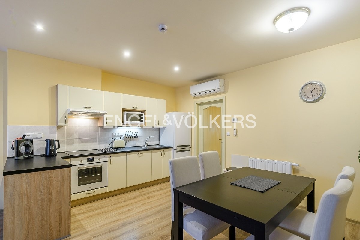 It is a quiet place close to the city center. Full civic amenities nearby - cafes, pharmacy, theater, schools, and shops. Great transport accessibility, a few steps from tram and bus stops or 5 minutes from metro station A - Náměstí Míru. In the surroundings, there are many parks for relaxation or sports.