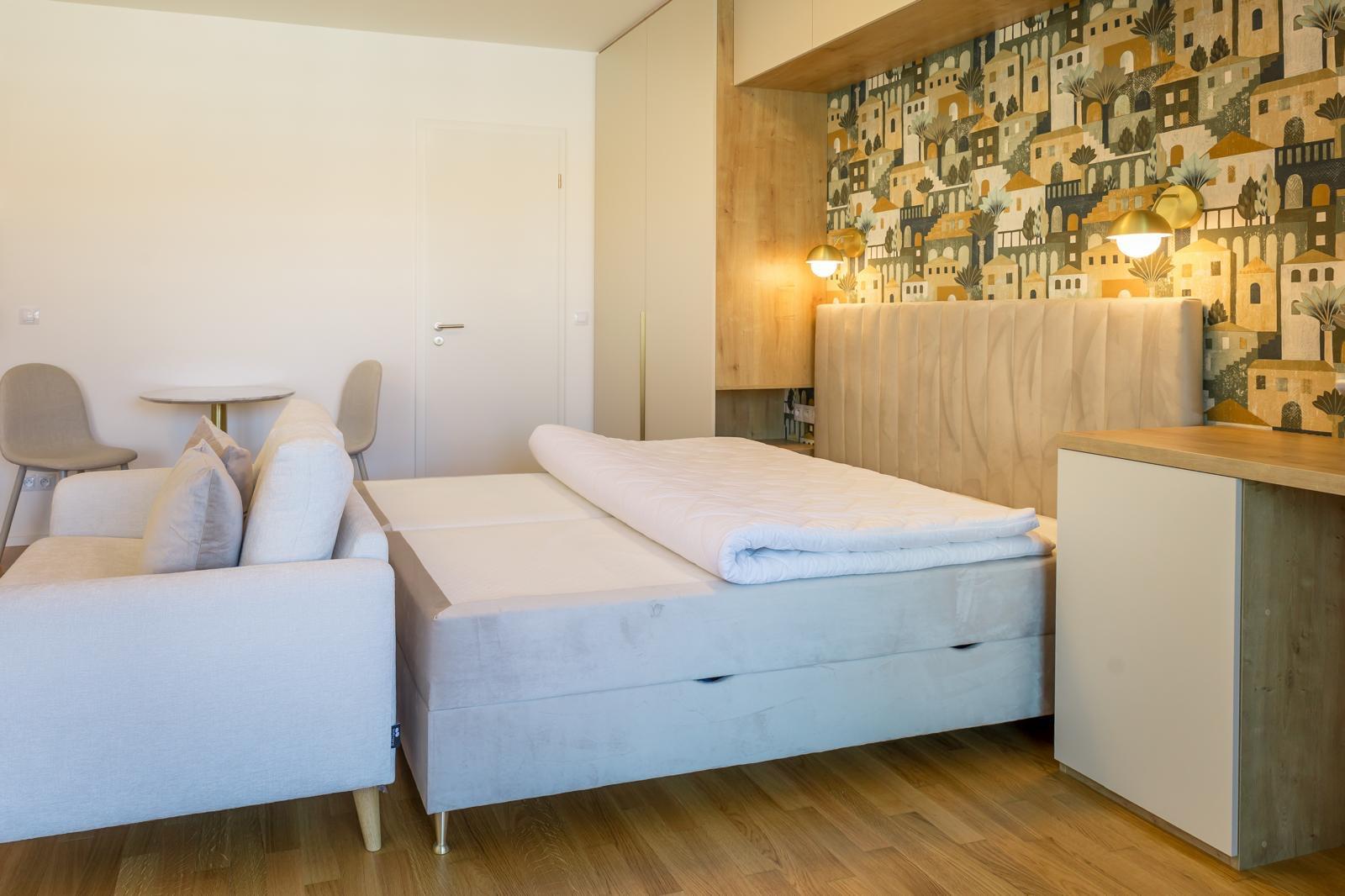 The apartment is fully furnished and equipped with appliances