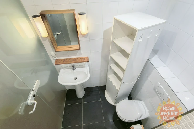 - From the living room, there is access to a spacious glazed loggia (5 m2). Thanks to the high-quality glazing, the loggia can be used even in winter months, for example, for over-wintering plants.