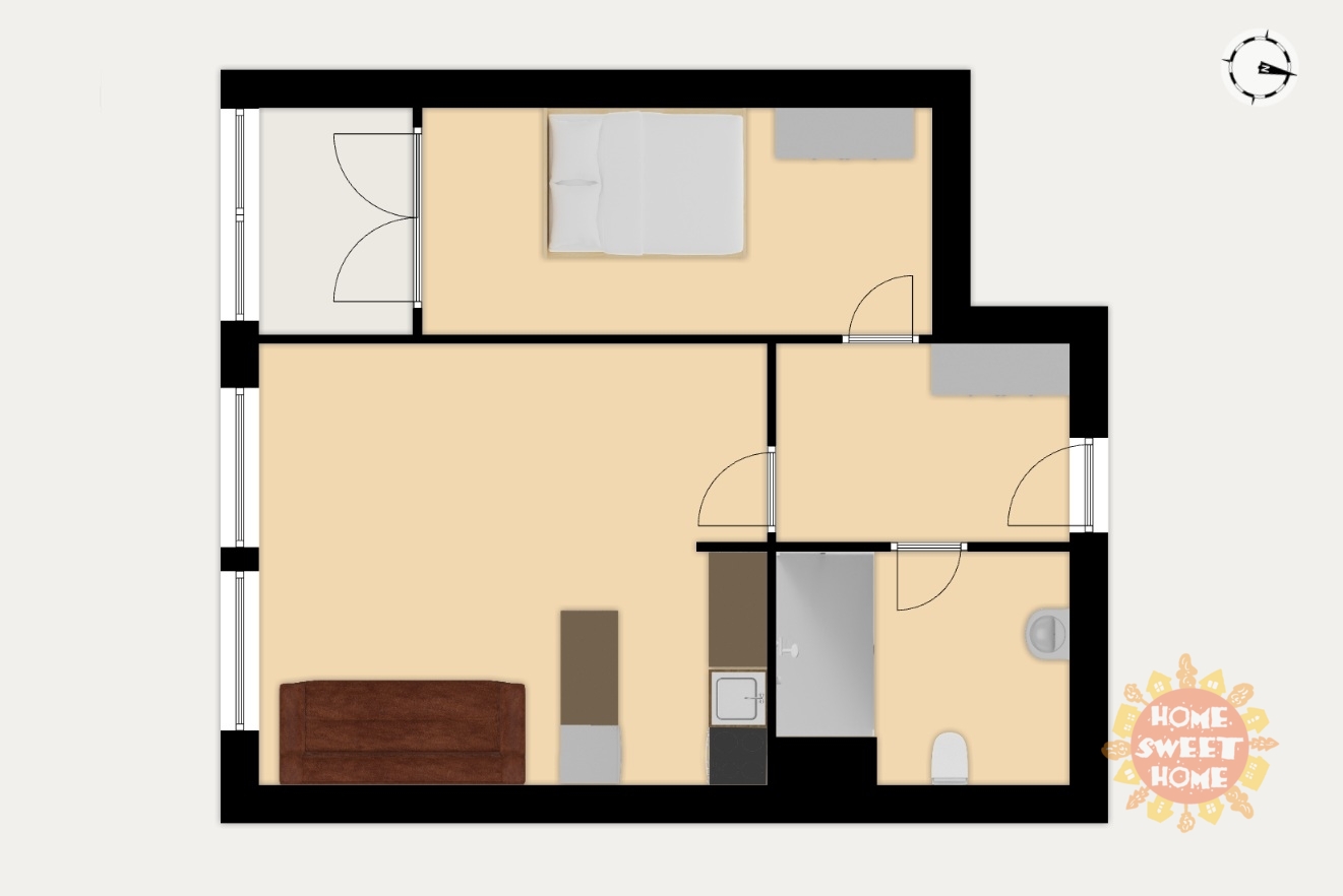 We offer for rent a partially furnished 1-bedroom apartment (2+kk) with a total area of 49 m2 (44 m2 apartment + 5 m2 loggia) in Bryksova Street, Cerny Most. The apartment is located on the 6th floor of a panel building with an elevator and features a very practical layout.