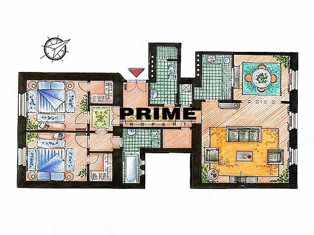 The property comprises: an entrance hallway, a living room with a dining area, a small, fully fitted kitchen with appliances (cooker, refrigerator and a dishwasher), two bedrooms with walk in closets, two bathrooms (one with a shower cubicle, sink, toilet and a bidet and one with a bathtub, sink, toilet and a bidet) and a boiler room.