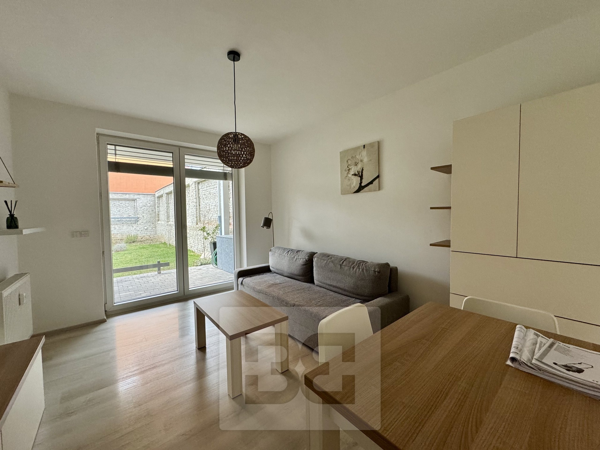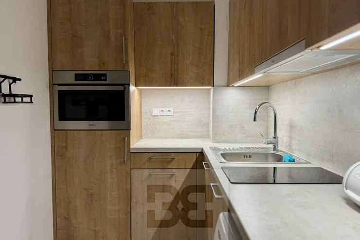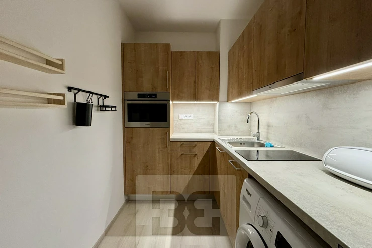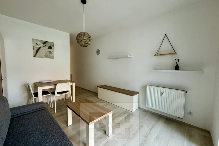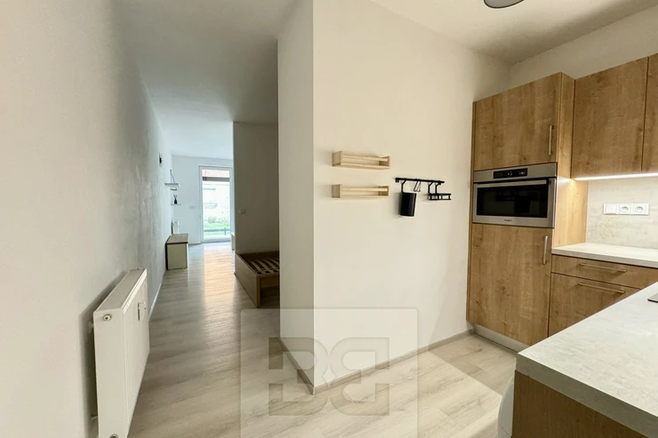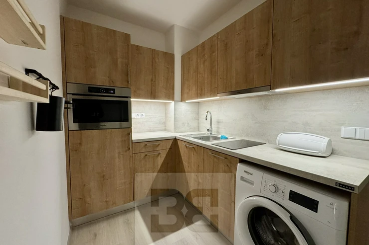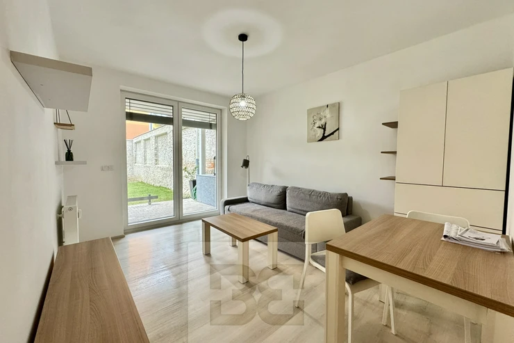 available from 1.4.2026. Modern apartment 1+kk in a prestigious location of Brno - Husovice offers the most comfortable living for couples or singles. This elegantly furnished apartment of 40 m² is located in a new building on the 1st floor with a terrace of 8 m² and an associated cellar for additional storage space. A huge advantage is then the beautiful garden of 90m². On entering the apartment we are greeted by a hallway with plenty of storage space and access to a beautiful bathroom with modern shower, sink and toilet. There is also a fully equipped kitchen area including appliances and washing machine. The sleeping area has a comfortable bed (can be moved out) of 140x200, a built-in wardrobe and a living area with a comfortable sofa and TV table. The ideal location near the city centre and the river provides quiet living with quick access to all necessary services and office buildings such as ZET office, where top Czech startups such as kiwi.com are based. The apartment is priced at 17000 CZK with the possibility of moving in from 1.4.2026,. Deposit and commission in the amount of one month's rent. Do not forget about the advance payment of about 3200 CZK. The best place for modern living and happy life!