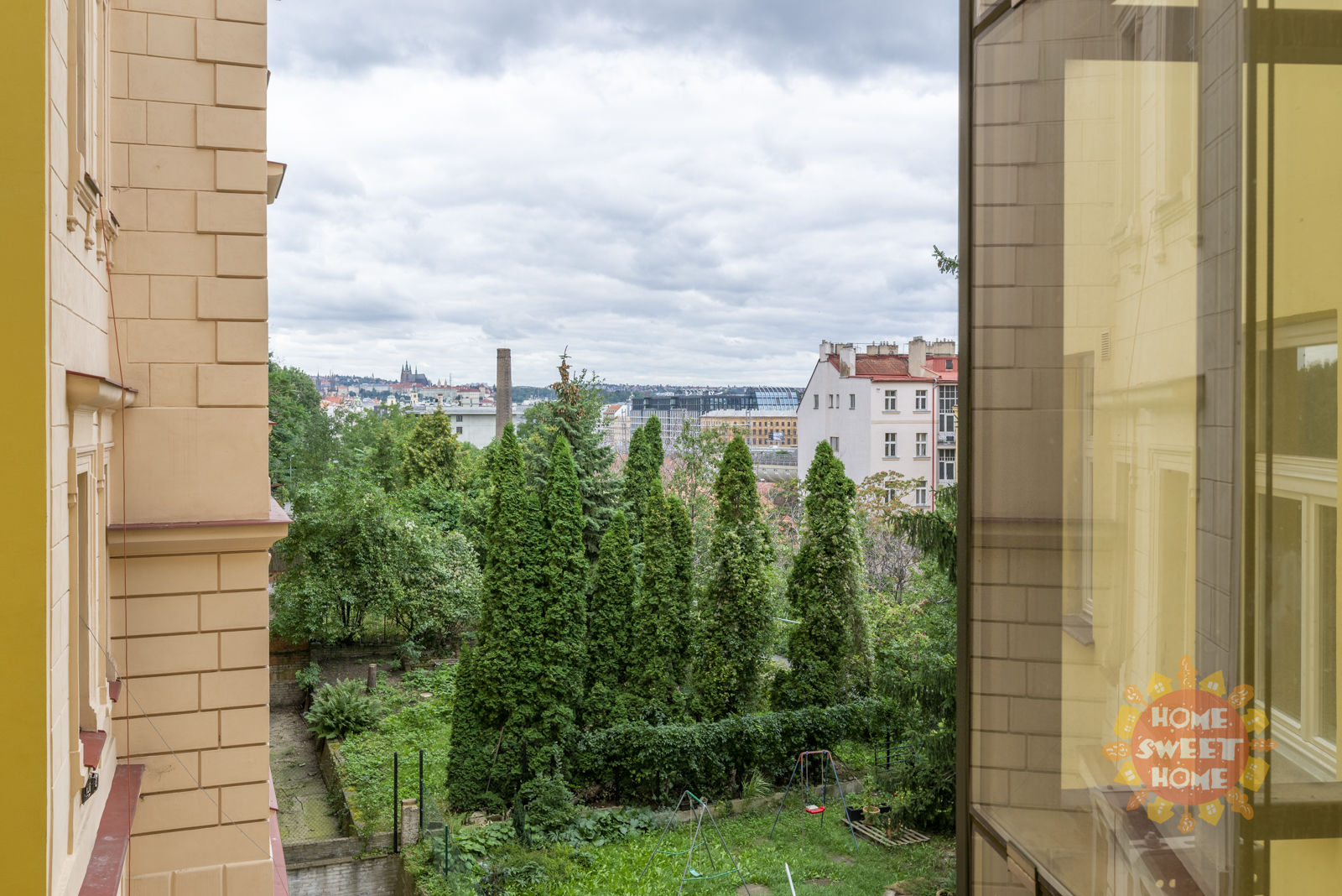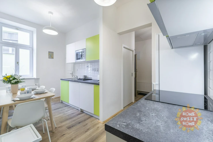 The building is situated in a popular location close to the city center, just a few minutes from the University of Economics (VŠE). The area offers excellent amenities, including cafés, restaurants, shops, and more. Transport connections are very convenient: 5 minutes to the Viktoria Žižkov tram stop (1 stop to Hlavní nádraží metro station, line C, and 3 stops to Wenceslas Square). Several large parks are nearby, such as Mahlerovy sady, Vítkov, and Riegrovy sady.