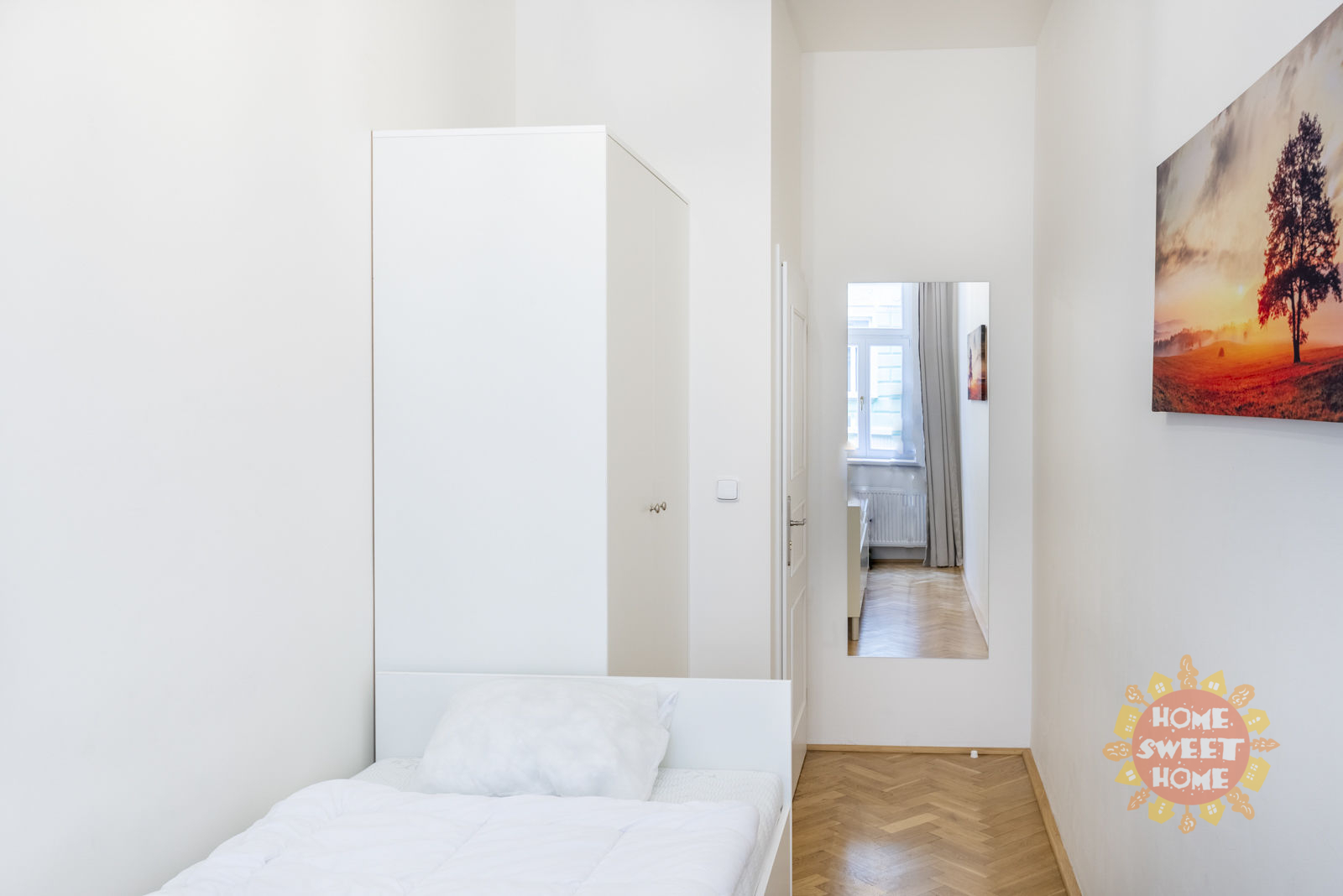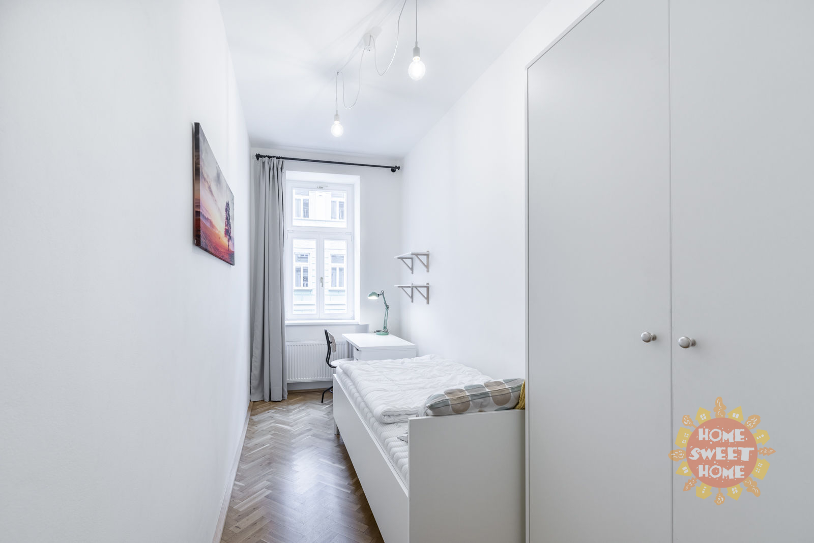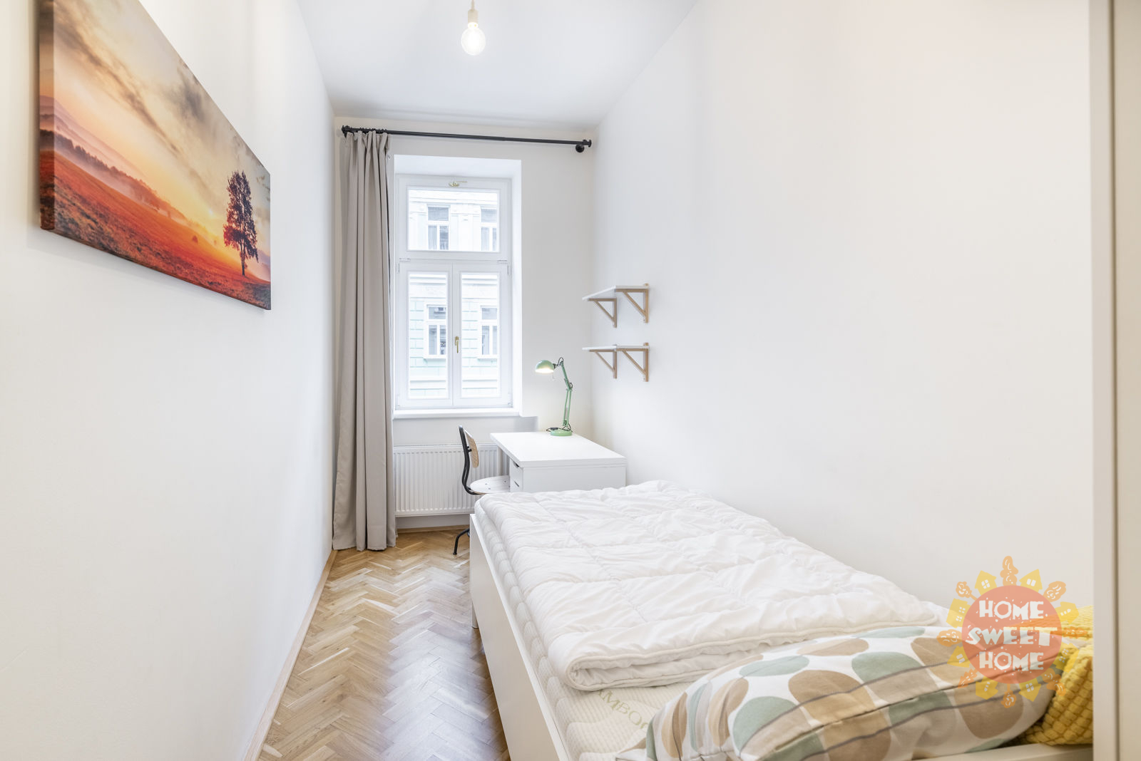 We offer a beautiful, fully furnished room measuring 10 m², located on the 2nd floor of the Řehořova Residence in Žižkov. The apartment has undergone a complete renovation. The room is part of a five-room apartment with a fully equipped kitchen, dining area, two bathrooms, and a separate toilet. The shared areas are fully equipped, including an iron, cleaning supplies, and other necessities for everyday use.