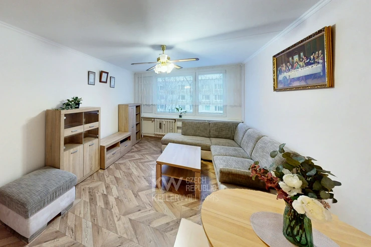 For long-term rent, I am offering a very pleasant and well‑designed 2-bedroom apartment (3+kk) with a floor area of 63.53 m², a 3 m² balcony, and a storage room. The apartment is located on the 3rd floor of a well-maintained building in a quiet part of Prague 11 – Háje. It is ideal for a family, a couple working from home, or flat-sharing.